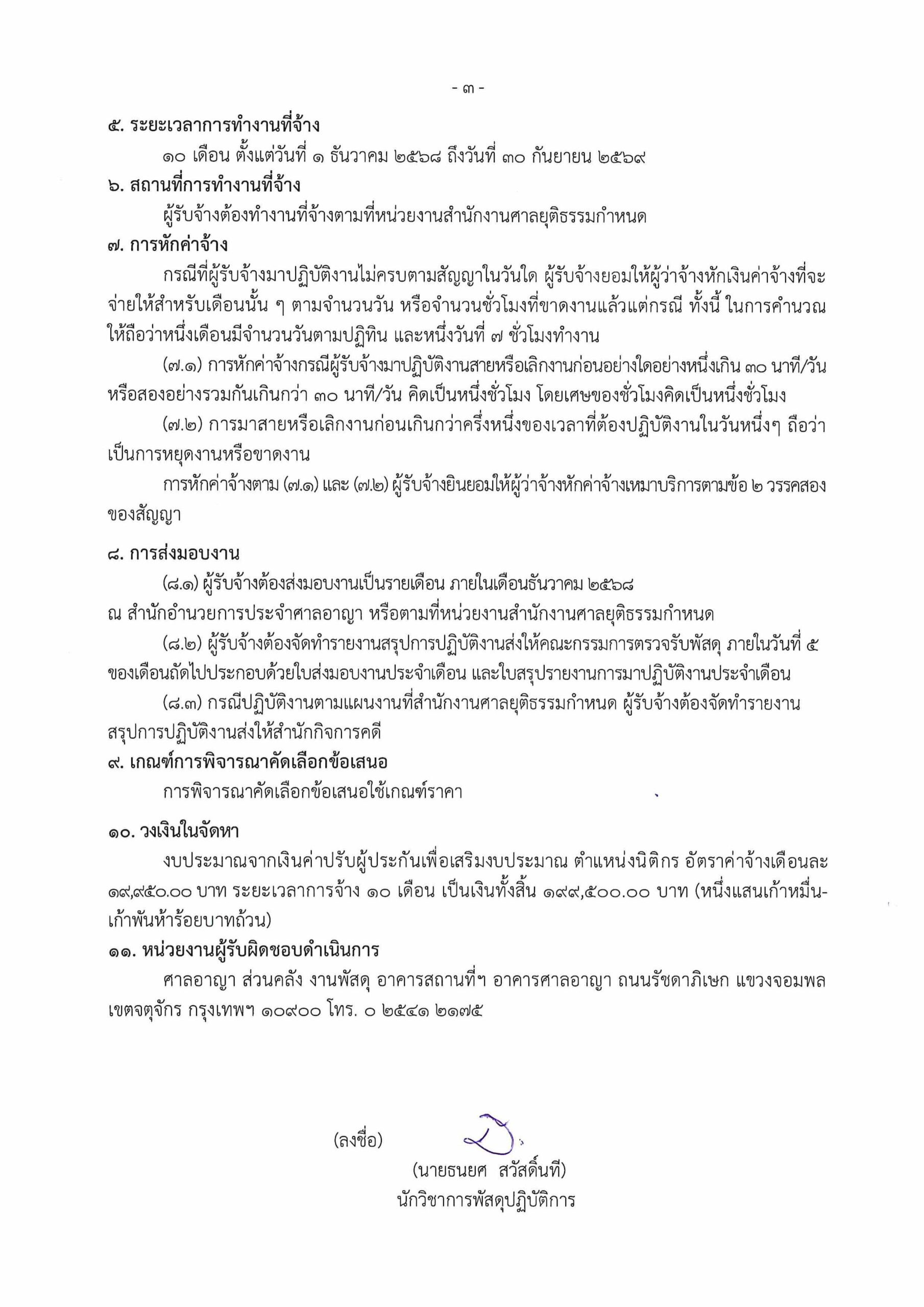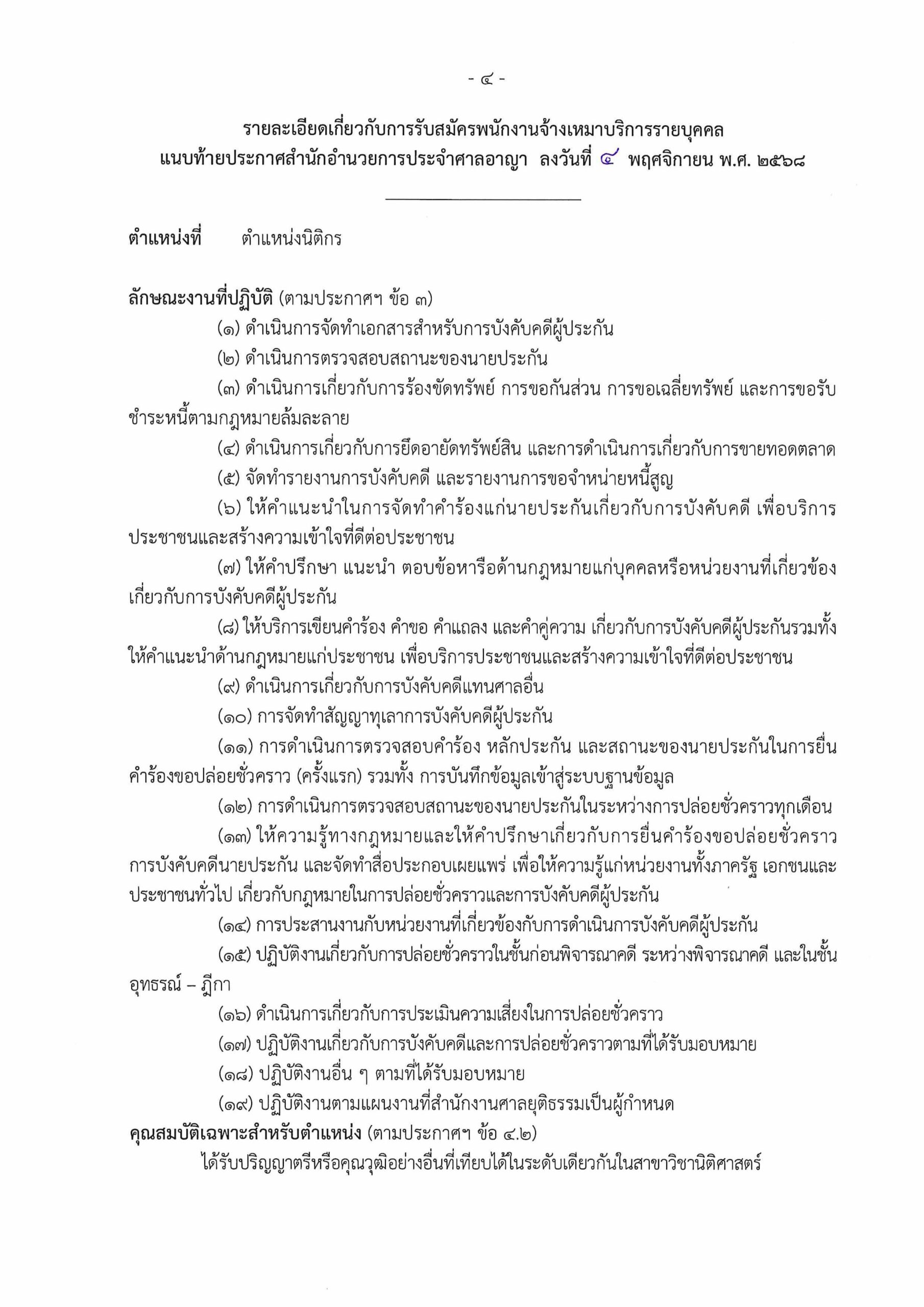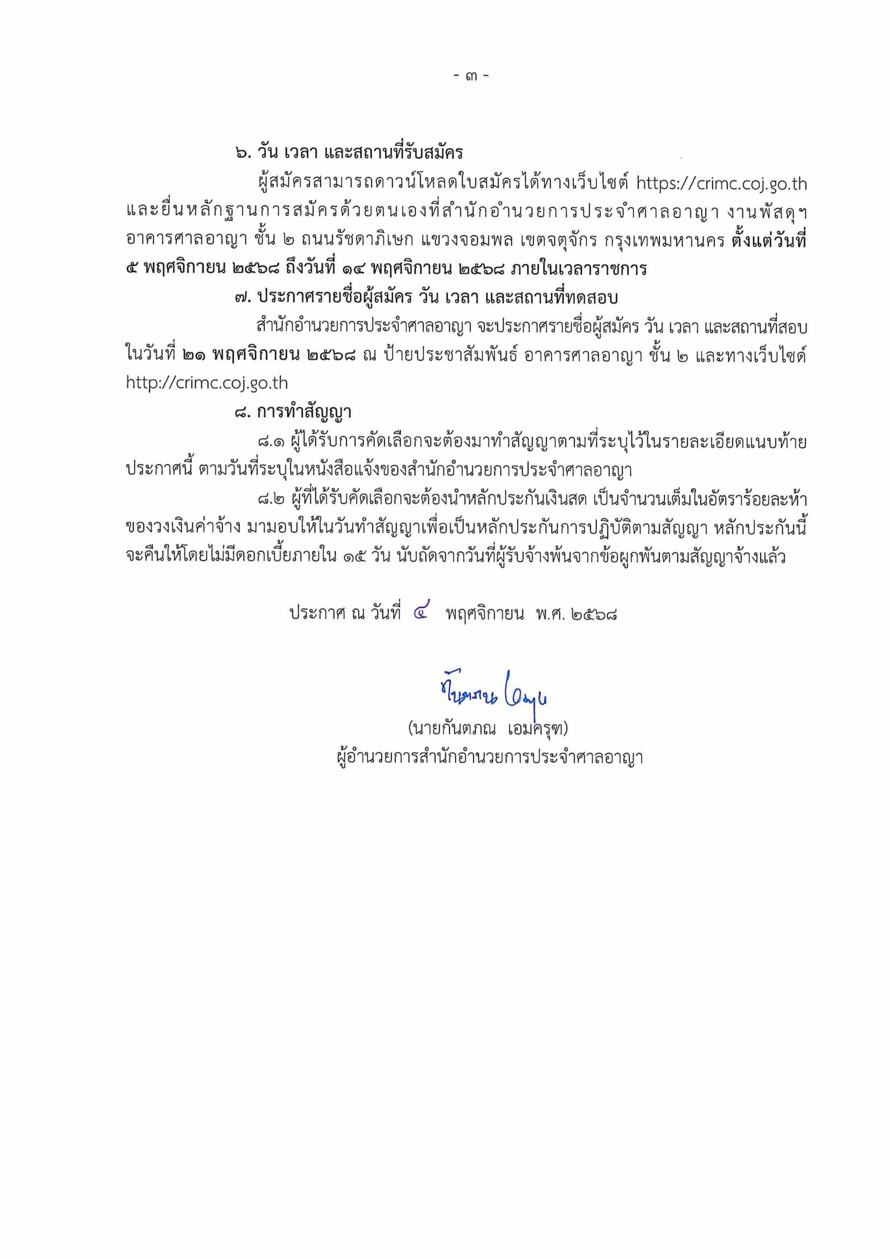 ประกาศ สำนักอำนวยการประจำศาลอาญา เรื่อง การรับสมัครพนักงานจ้างเหมาบริการรายบุคคล