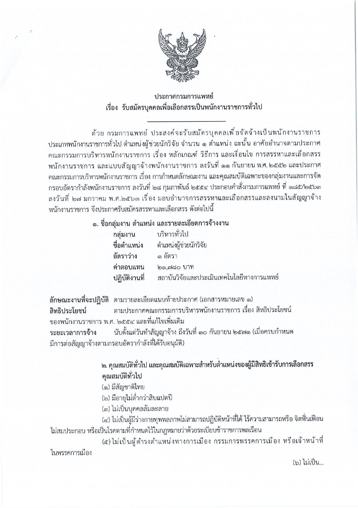 กรมการแพทย์ รับสมัครพนักงานราชการ