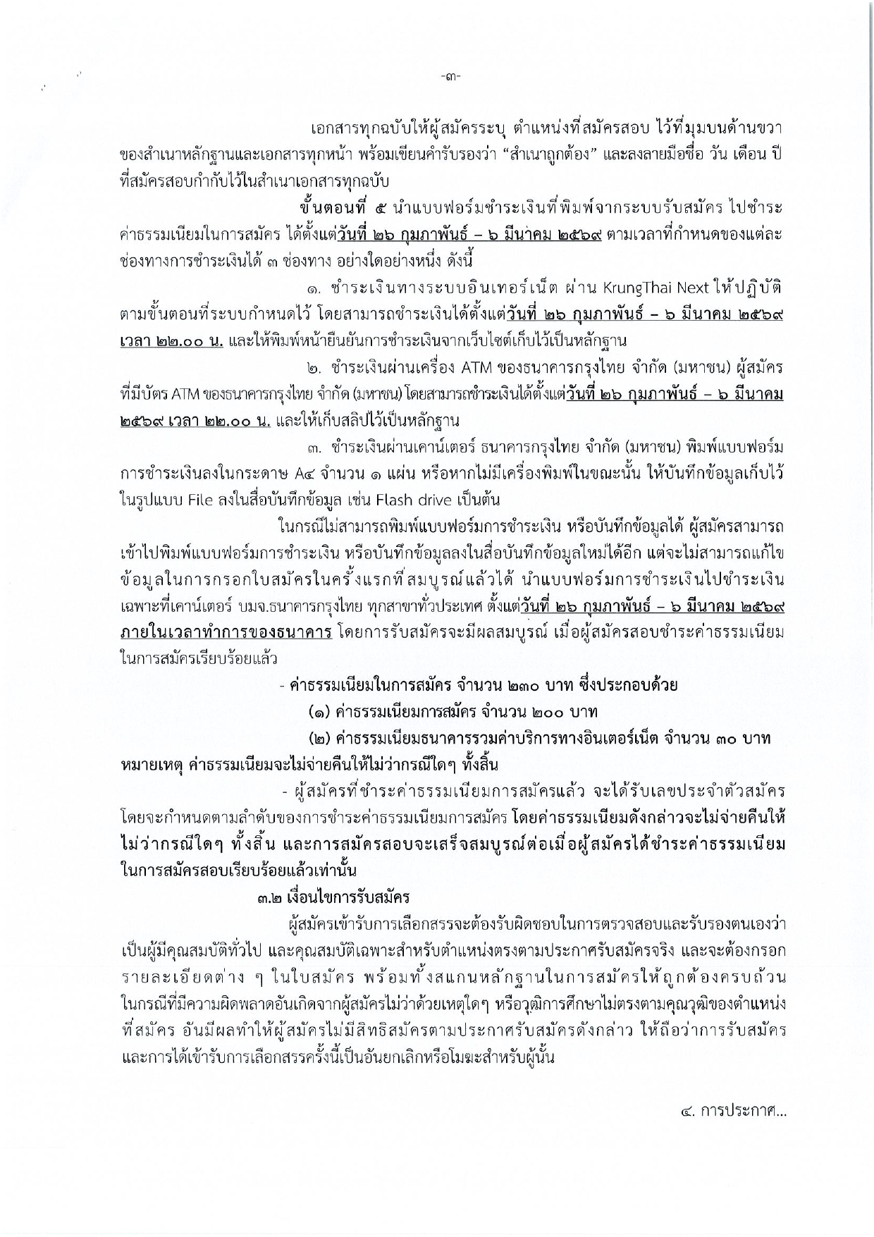 หมายเหตุ: ผู้ที่ผ่านการเลือกสรรในวันที่ทำสัญญาจ้าง จะต้องไม่เป็นข้าราชการหรือลูกจ้างของรัฐ/รัฐวิสาหกิจ และต้องนำใบรับรองแพทย์ (ออกไม่เกิน 1 เดือน) มายื่นด้วย