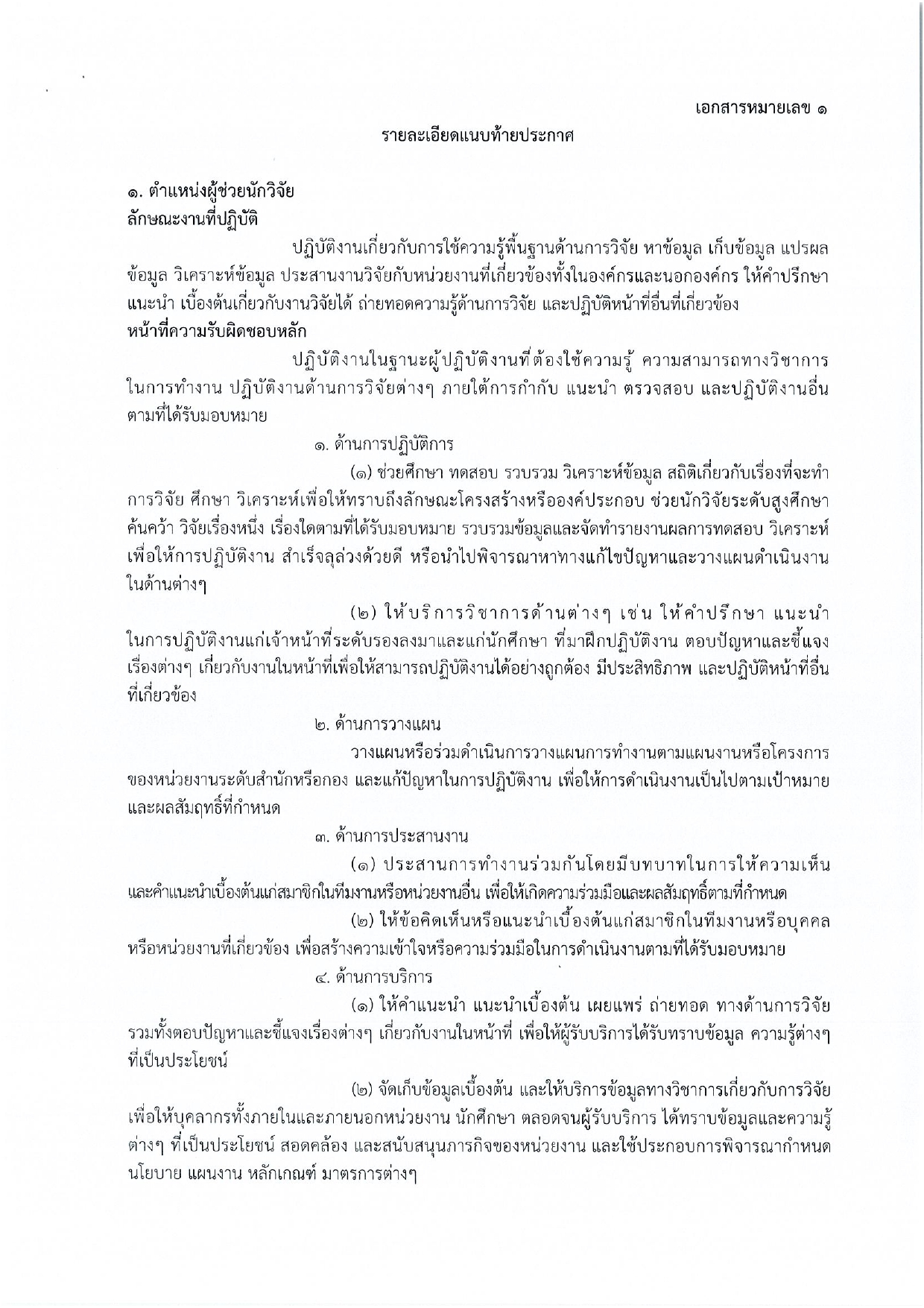 ชื่อตำแหน่ง: ผู้ช่วยนักวิจัย