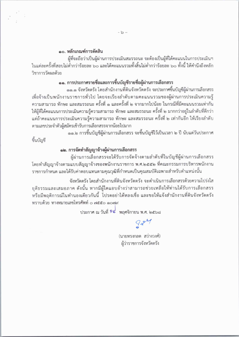 ประกาศจังหวัดตรัง เรื่อง รับสมัครบุคคลเพื่อเลือกสรรเป็นพนักงานราชการทั่วไป