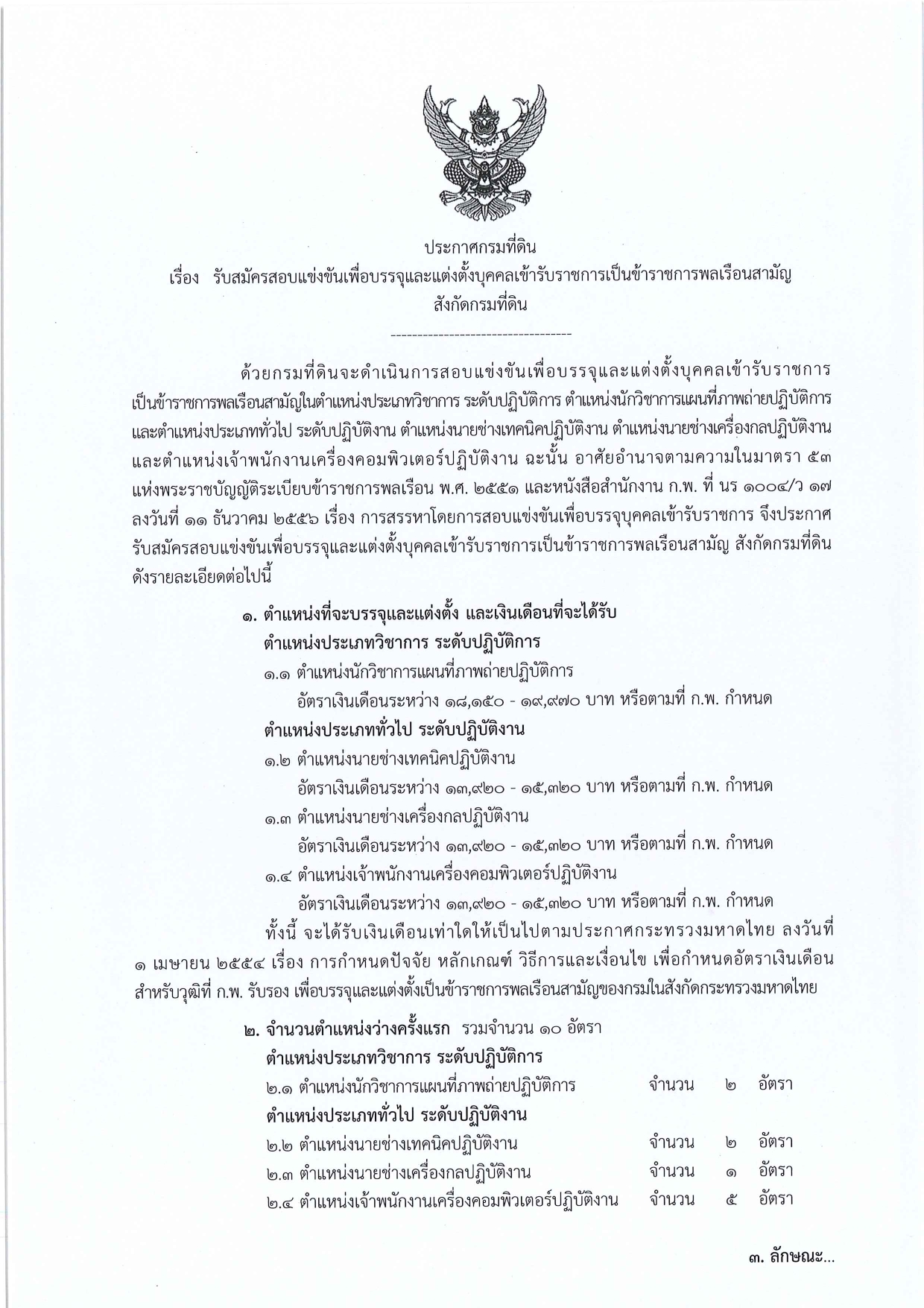 กรมที่ดิน ประกาศรับสมัครสอบแข่งขันเพื่อบรรจุและแต่งตั้งบุคคลเข้ารับราชการเป็นข้าราชการพลเรือนสามัญ