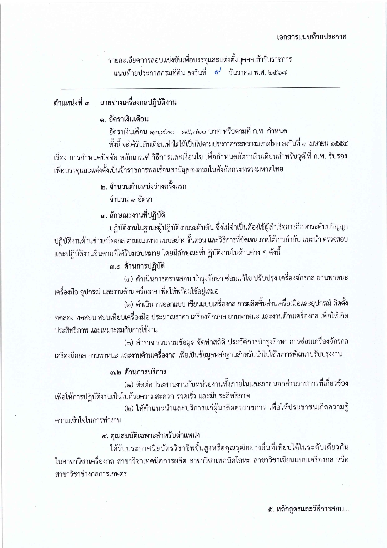 3. ตำแหน่งนายช่างเครื่องกลปฏิบัติงาน (ระดับปวส.)