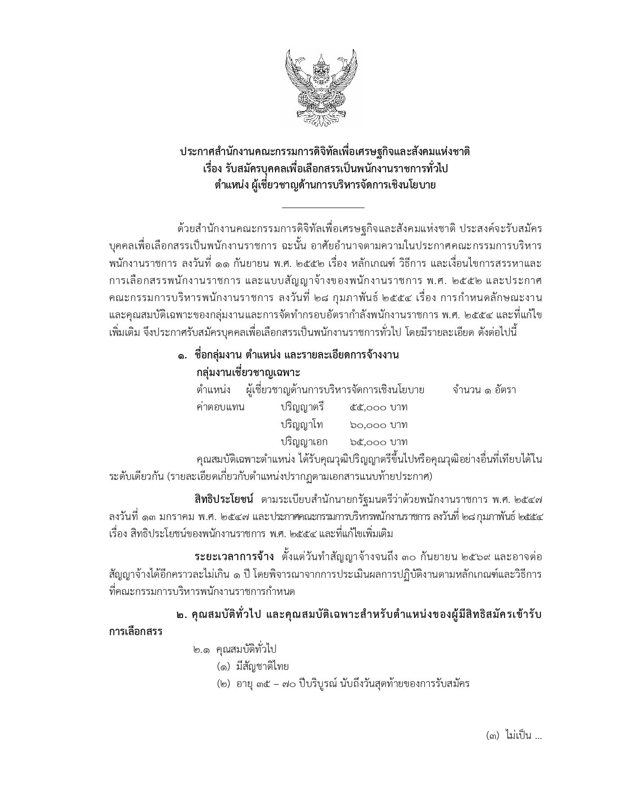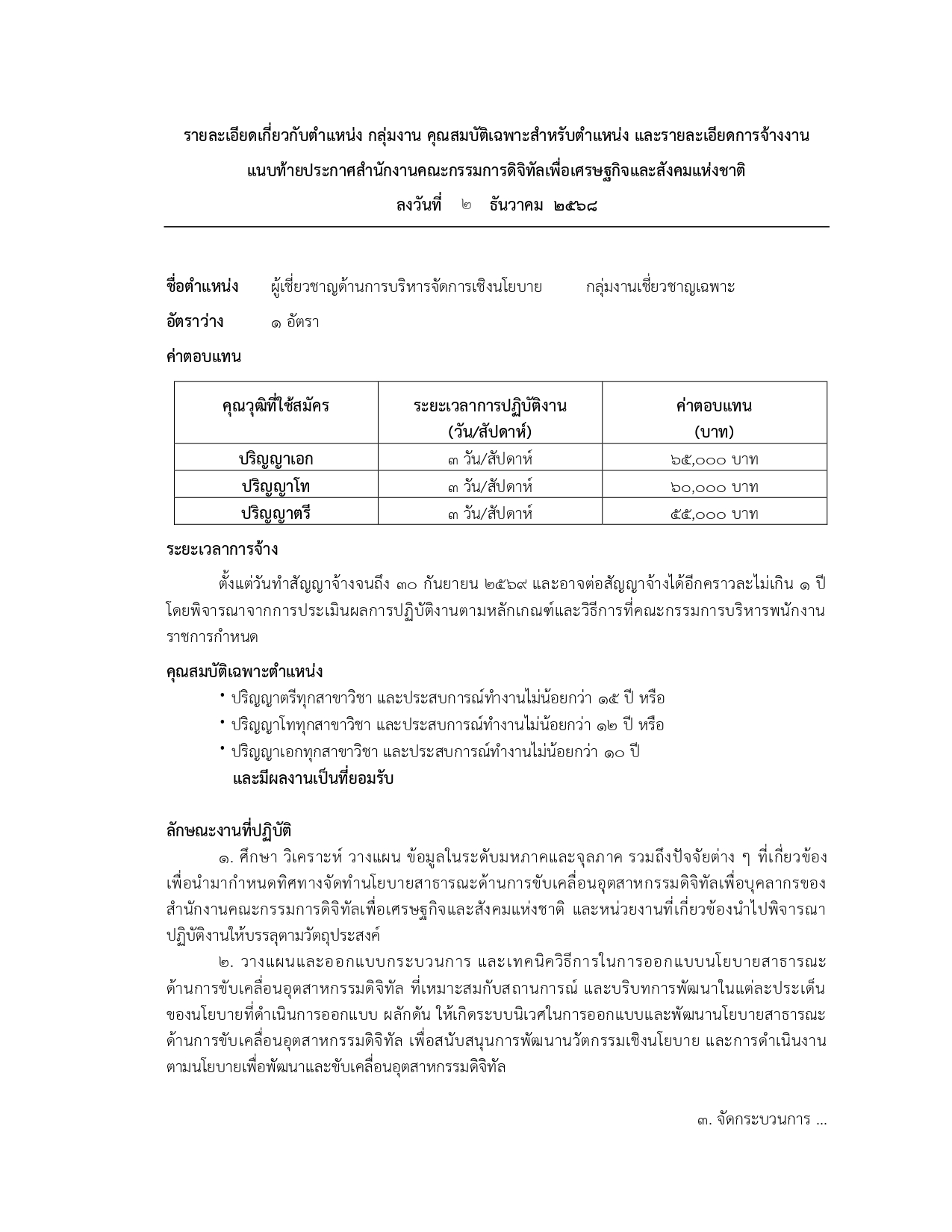 เปิดรับสมัครบุคคลเพื่อจัดจ้างเป็นพนักงานราชการในตำแหน่ง ผู้เชี่ยวชาญด้านการบริหารจัดการเชิงนโยบาย เพื่อร่วมขับเคลื่อนนโยบายดิจิทัลของประเทศ