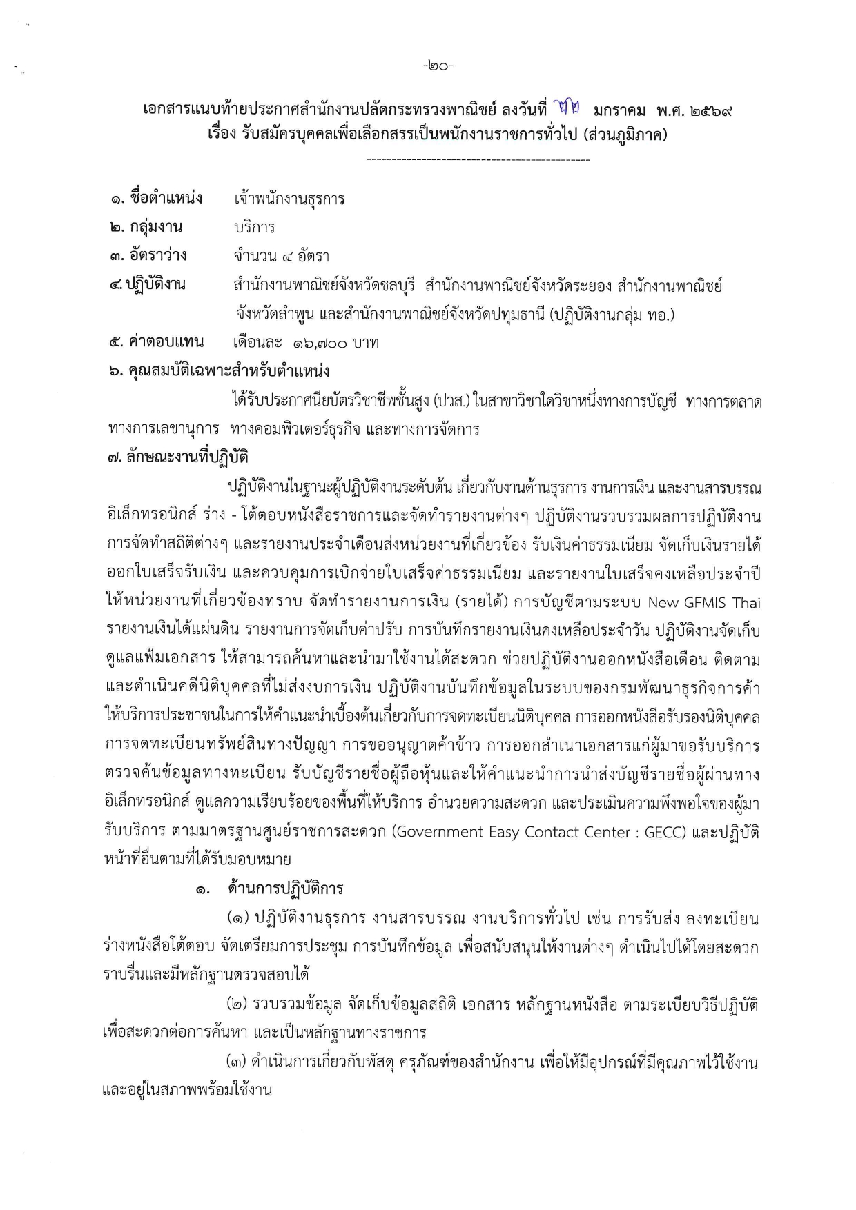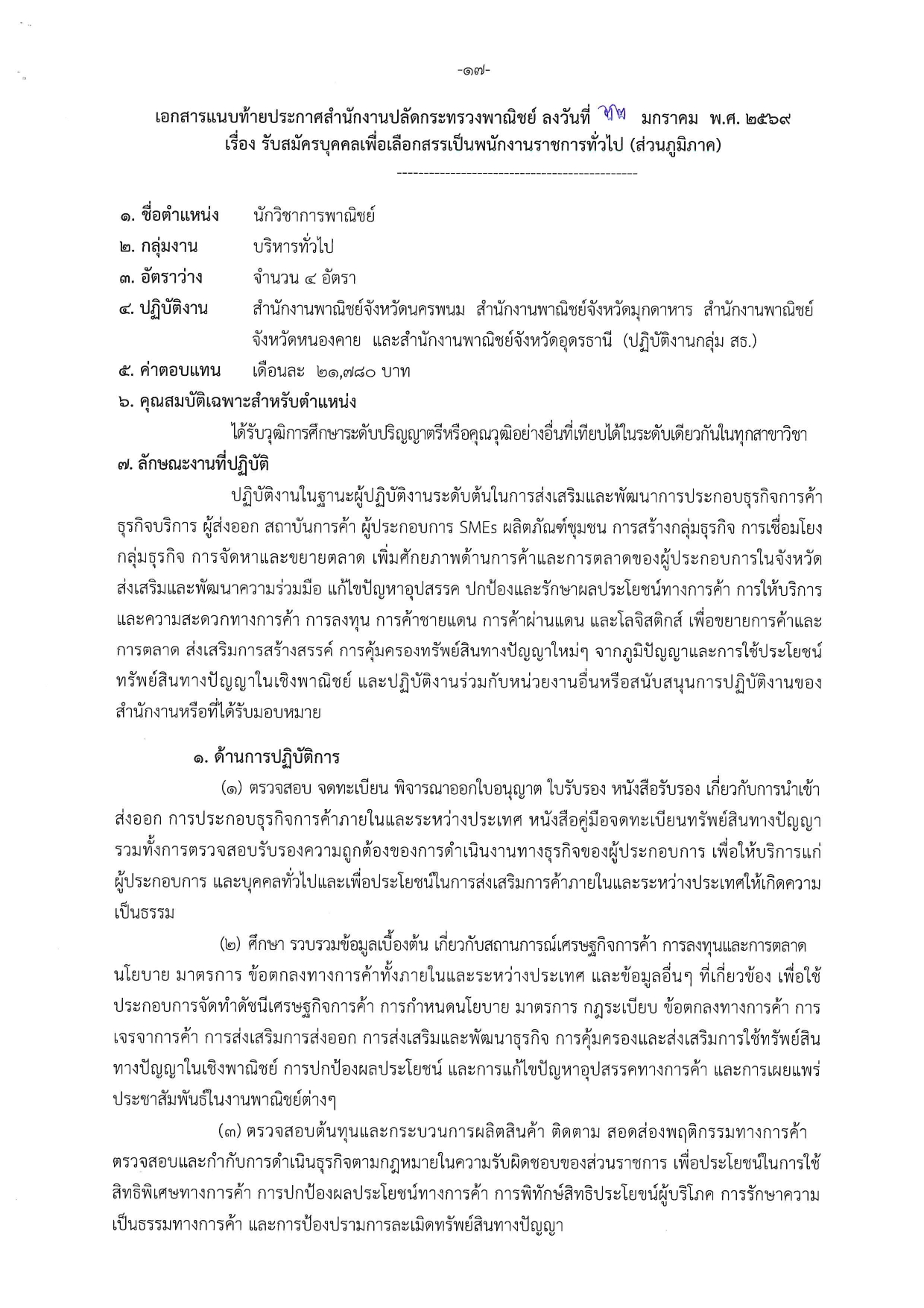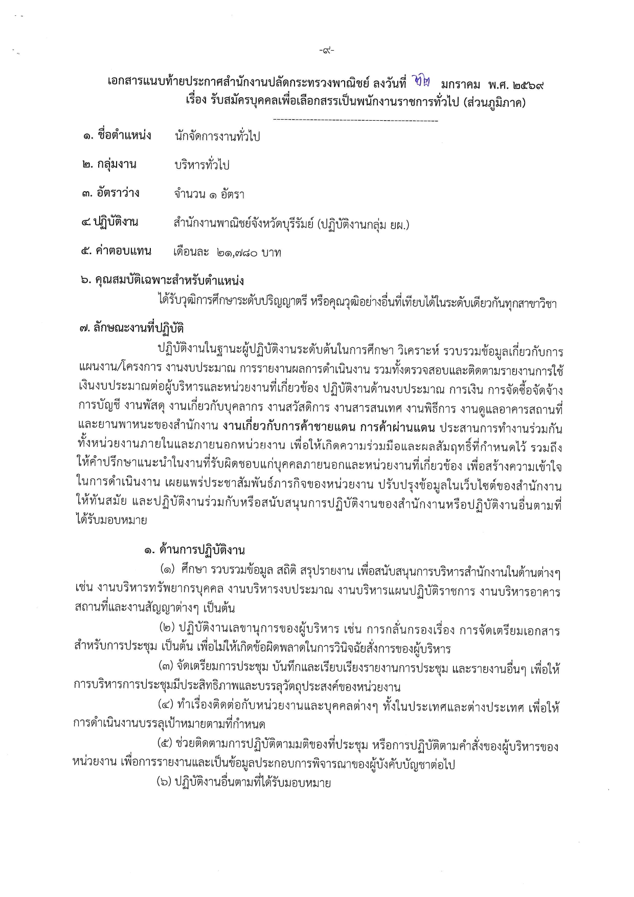 คลิกที่นี่เพื่ออ่าน ประกาศสำนักงานปลัดกระทรวงพาณิชย์ เรื่อง รับสมัครบุคคลเพื่อเลือกสรรเป็นพนักงานราชการทั่วไป (ส่วนภูมิภาค)