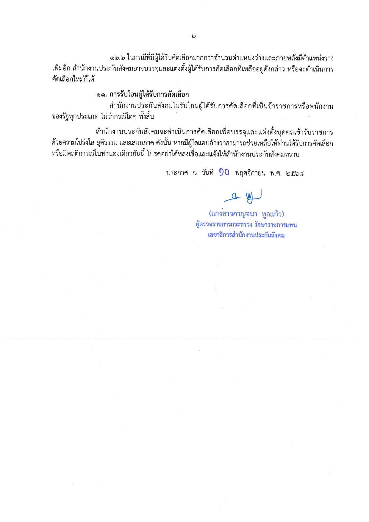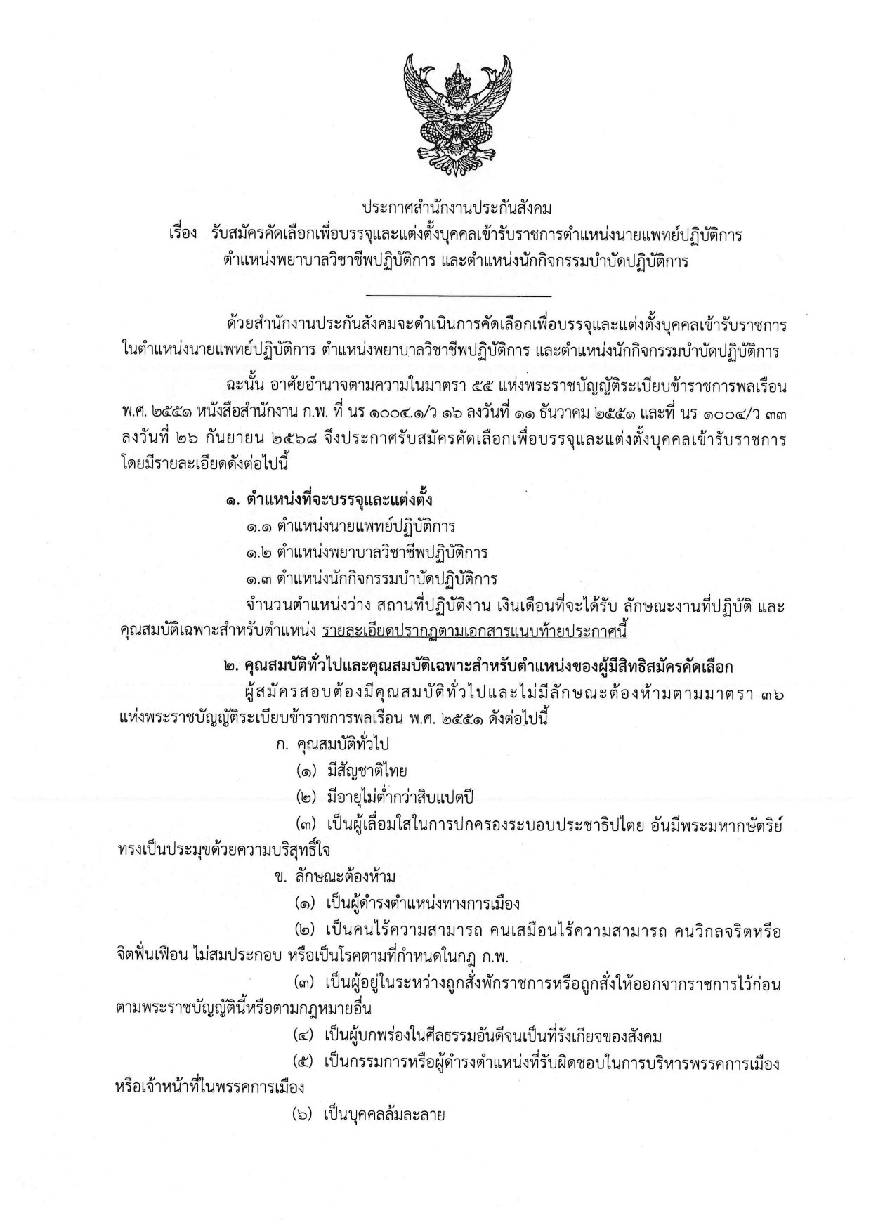 สำนักงานประกันสังคม รับสมัครคัดเลือกเพื่อบรรจุและแต่งตั้งบุคคลเข้ารับราชการ หลายตำแหน่ง ป.ตรี หลายสาขา / ไม่ต้องผ่าน ภาค ก. / เงินเดือน 18150 + / สมัคร online 17 – 28 พฤศจิกายน 2568
