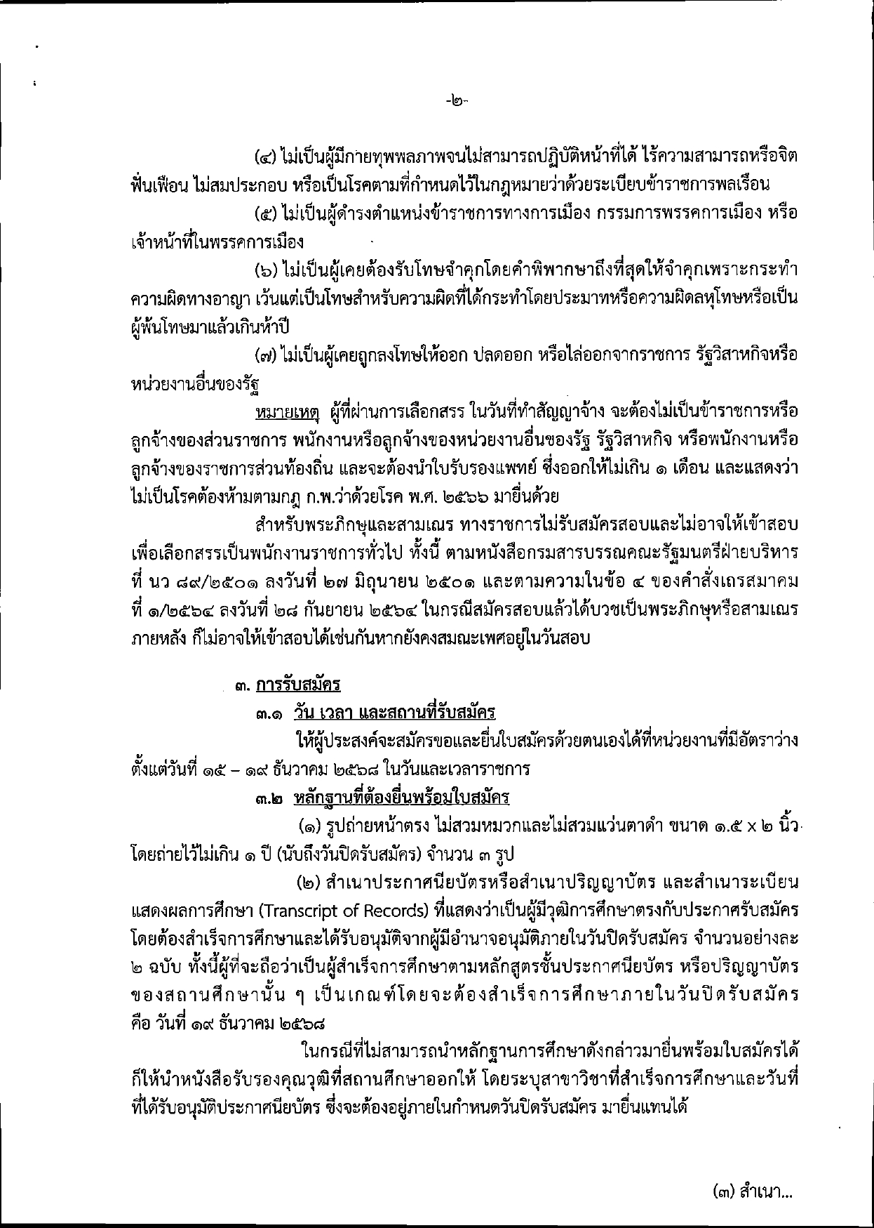วันรับสมัคร: ตั้งแต่วันที่ 15 ถึง 19 ธันวาคม 2568 (ยื่นใบสมัครด้วยตนเอง ณ หน่วยงานที่มีอัตราว่าง)