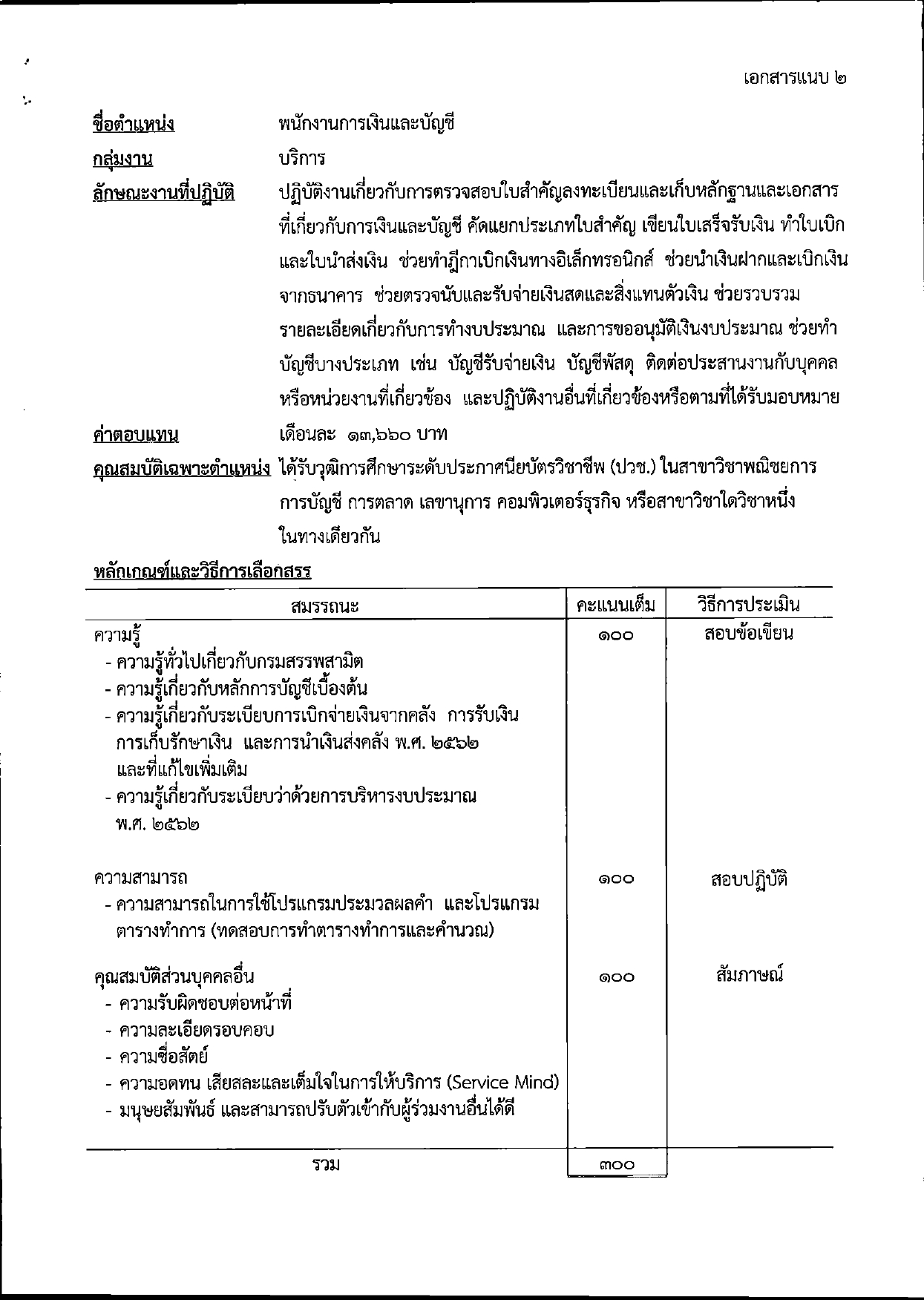 ตำแหน่งพนักงานการเงินและบัญชี (กลุ่มงานบริการ)