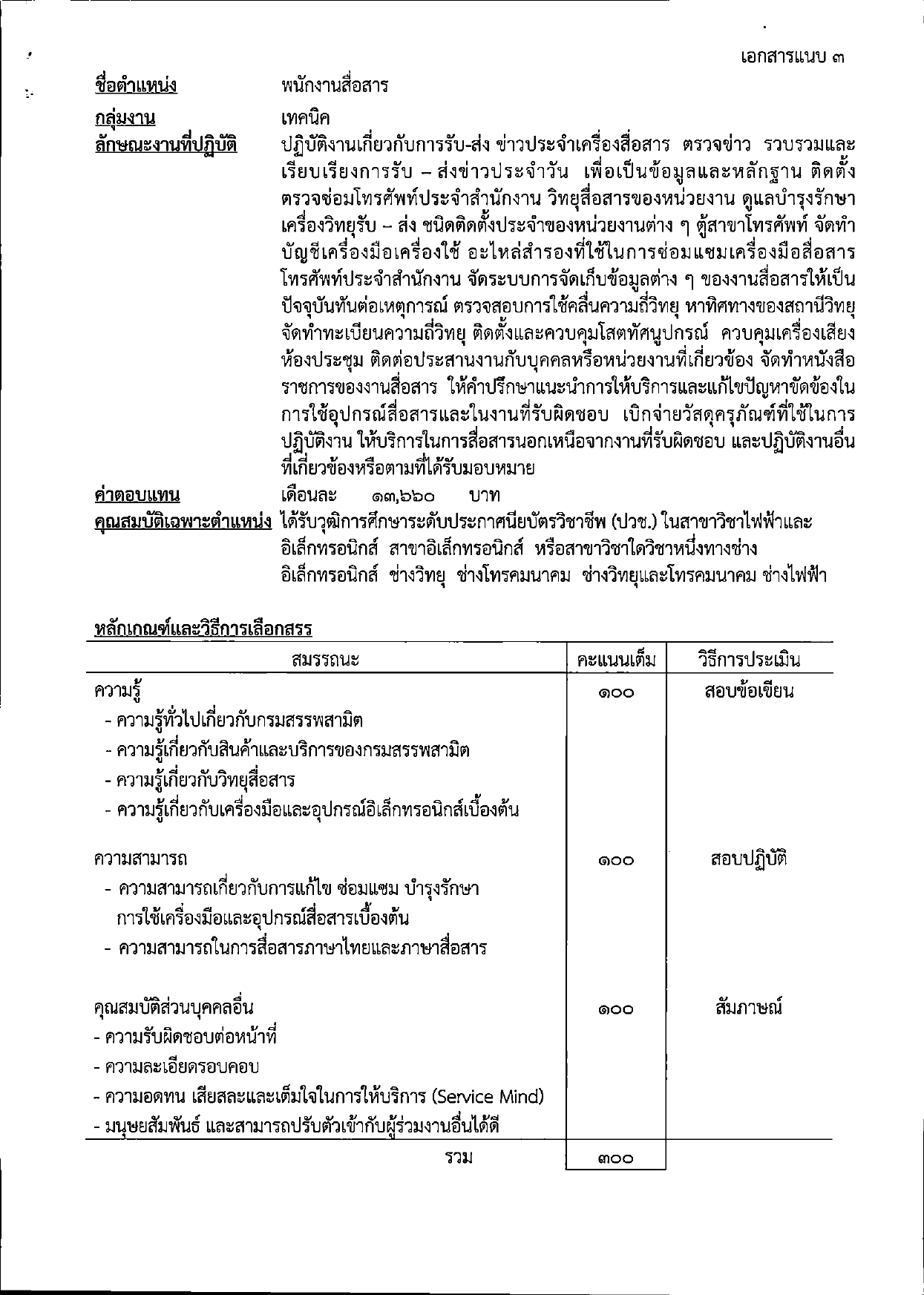 ตำแหน่งพนักงานสื่อสาร (กลุ่มงานเทคนิค)