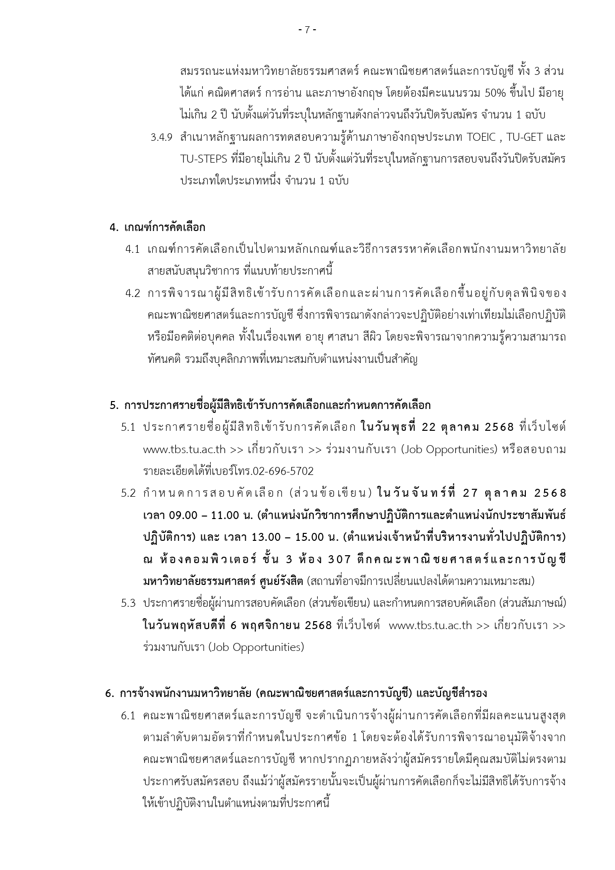 มหาวิทยาลัยธรรมศาสตร์ รับสมัครบุคคลเข้าเป็นพนักงานมหาวิทยาลัย หลายตำแหน่ง หลายอัตรา / ป.ตรี หลายสาขา / เงินเดือน 21250 + ค่าตอบแทนพิเศษ 5000 / สมัครทาง online 7 -16 ตุลาคม 2568