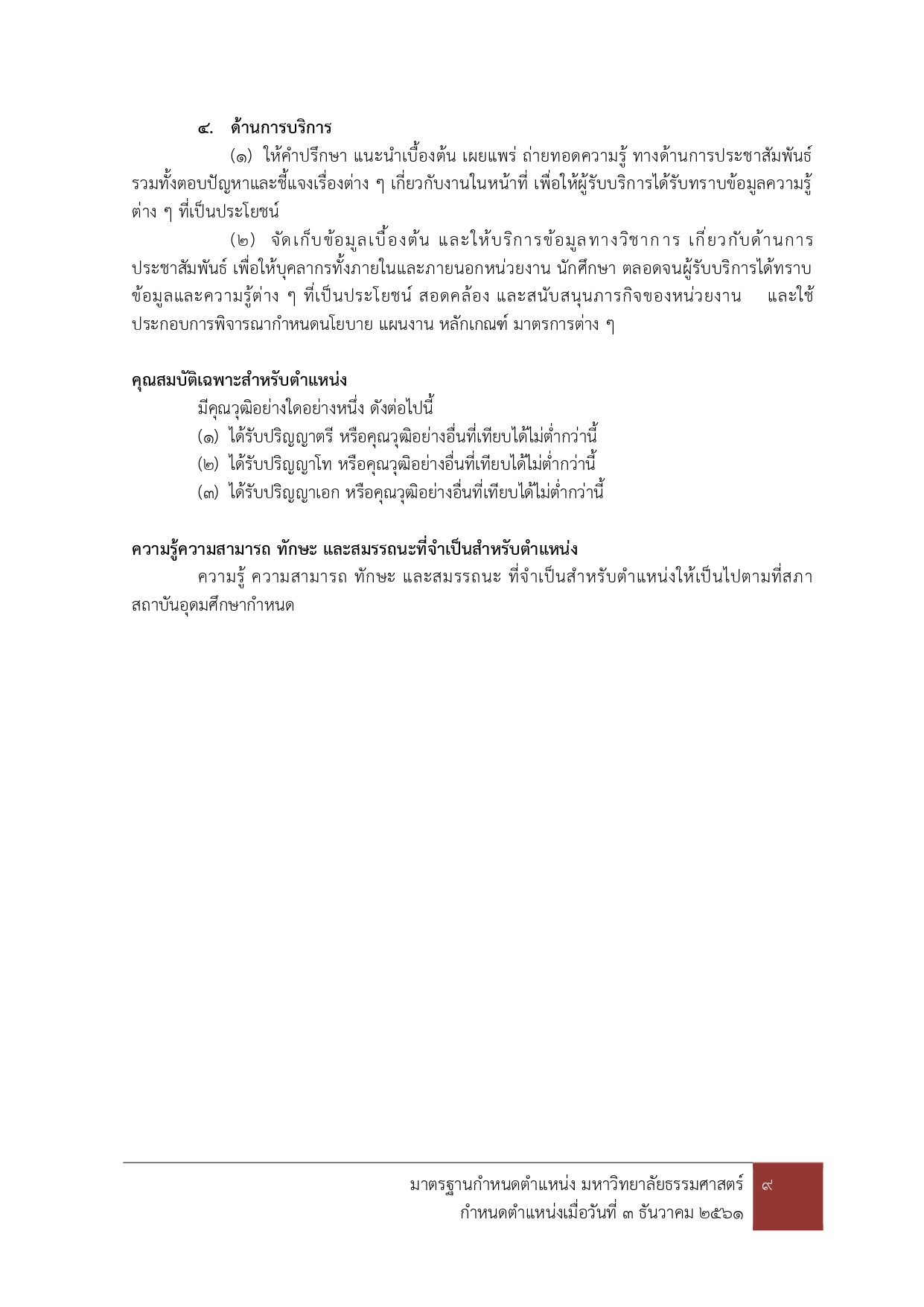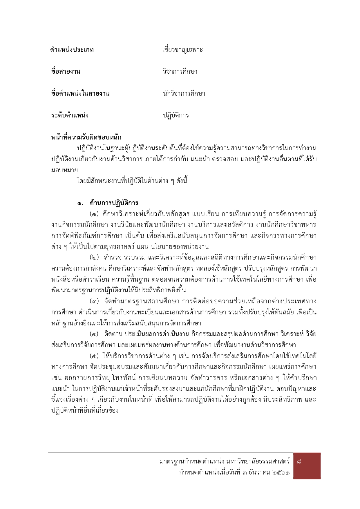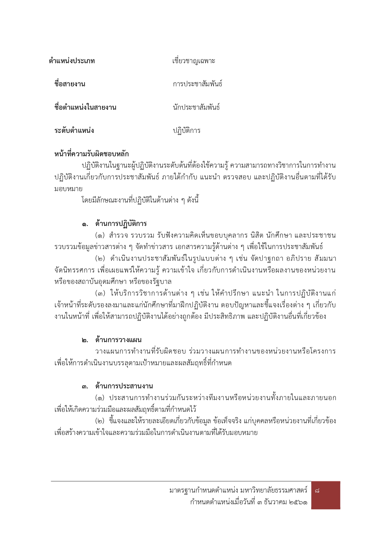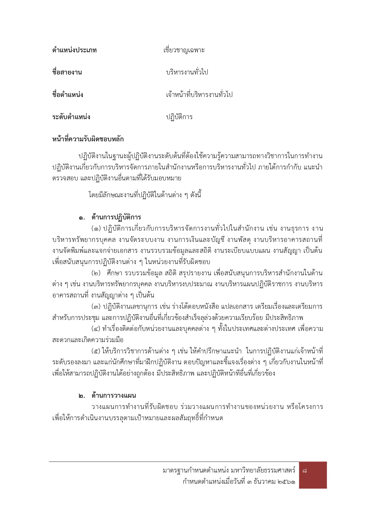 คุณสมบัติเฉพาะตำแหน่งและลักษณะงานโดยสังเขป