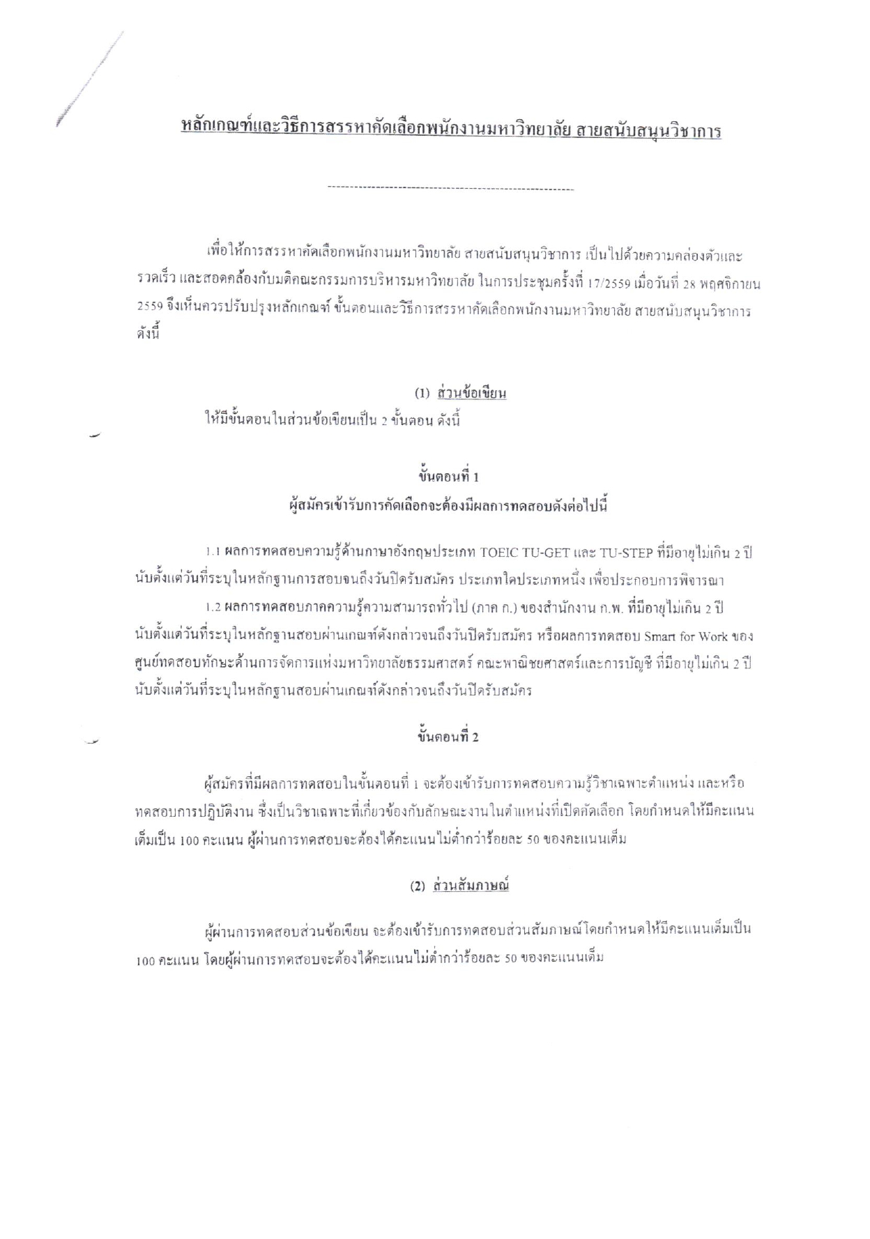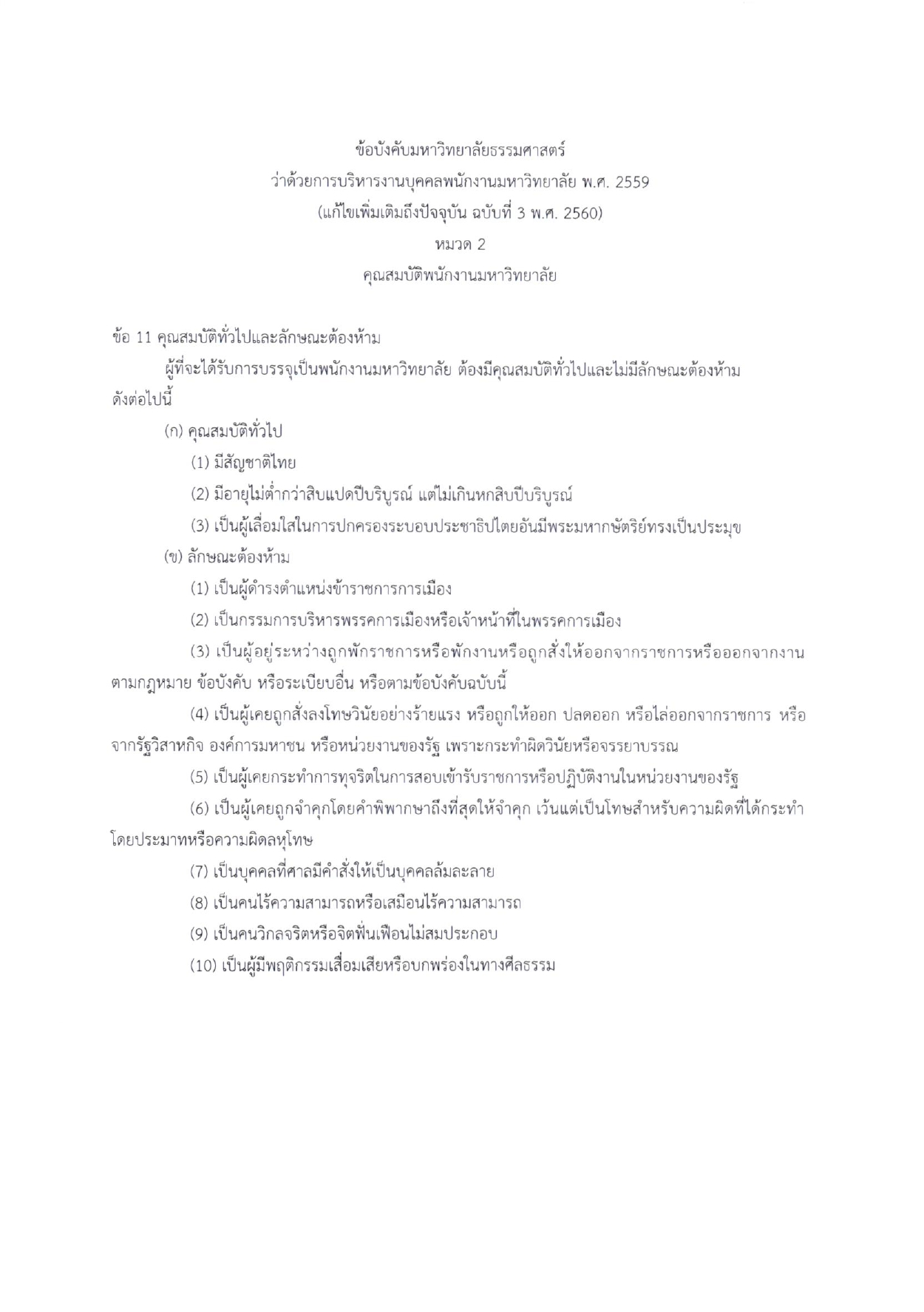 มีคุณสมบัติตามข้อบังคับมหาวิทยาลัยธรรมศาสตร์ ว่าด้วยการบริหารบุคคลพนักงานมหาวิทยาลัย พ.ศ. 2559