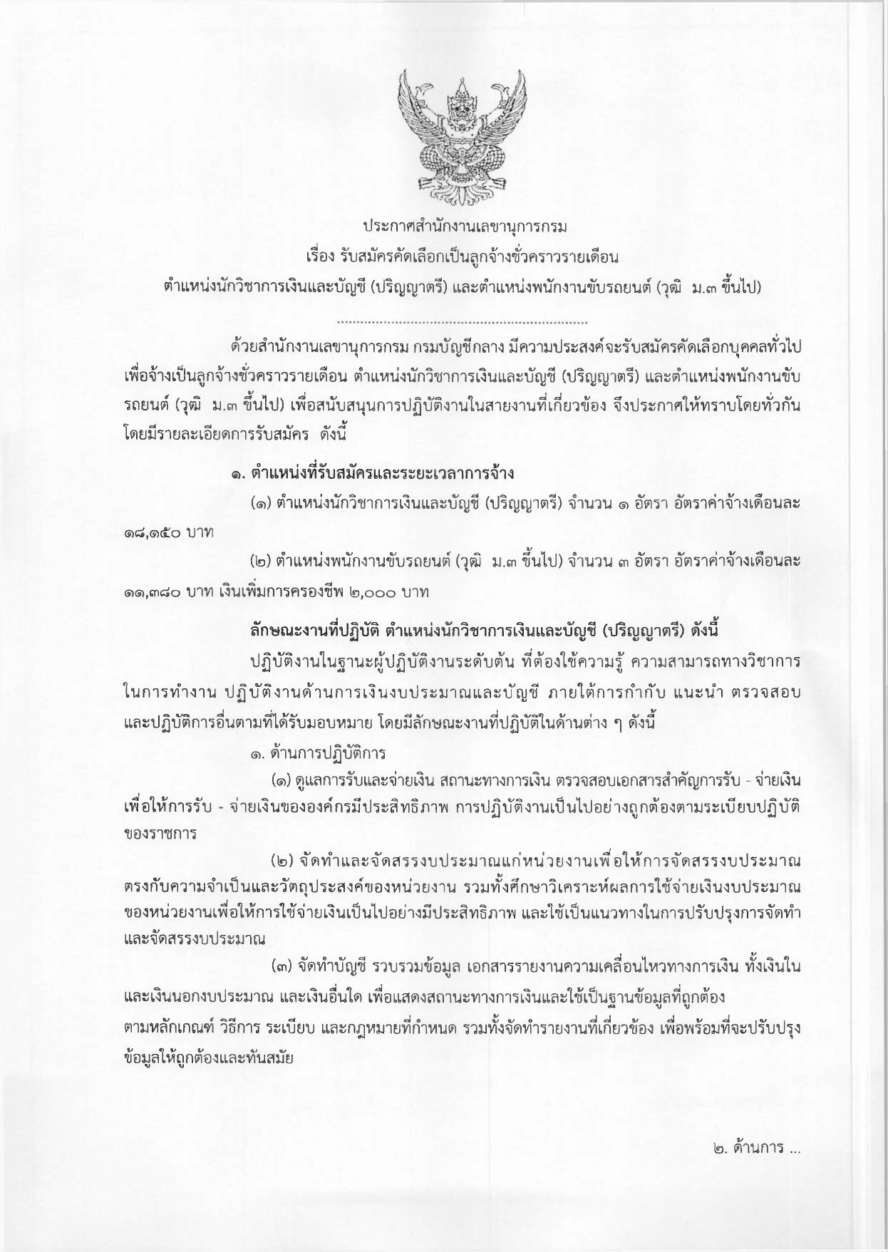 เรื่อง รับสมัครบุคคลเพื่อคัดเลือกเป็นลูกจ้างชั่วคราวรายเดือน (ตำแหน่งนักวิชาการเงินฯ และพนักงานขับรถ)