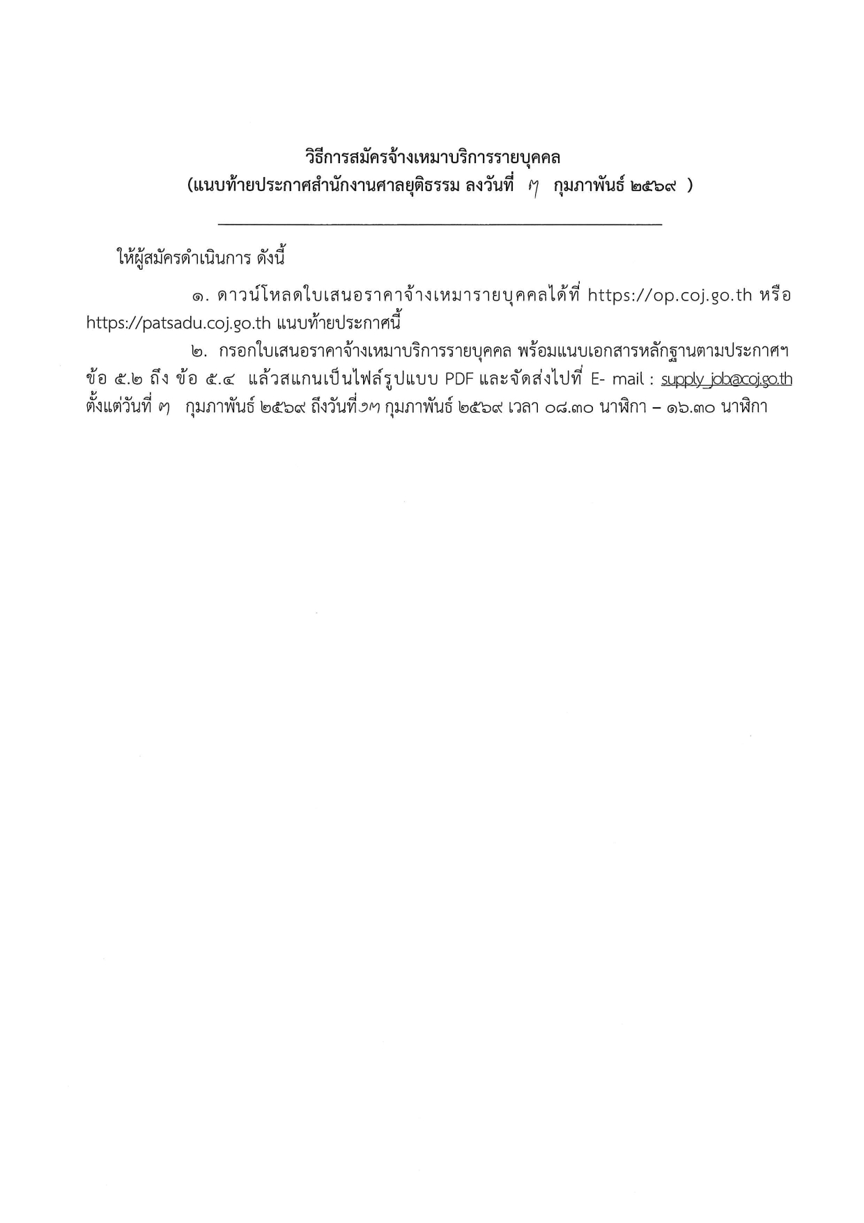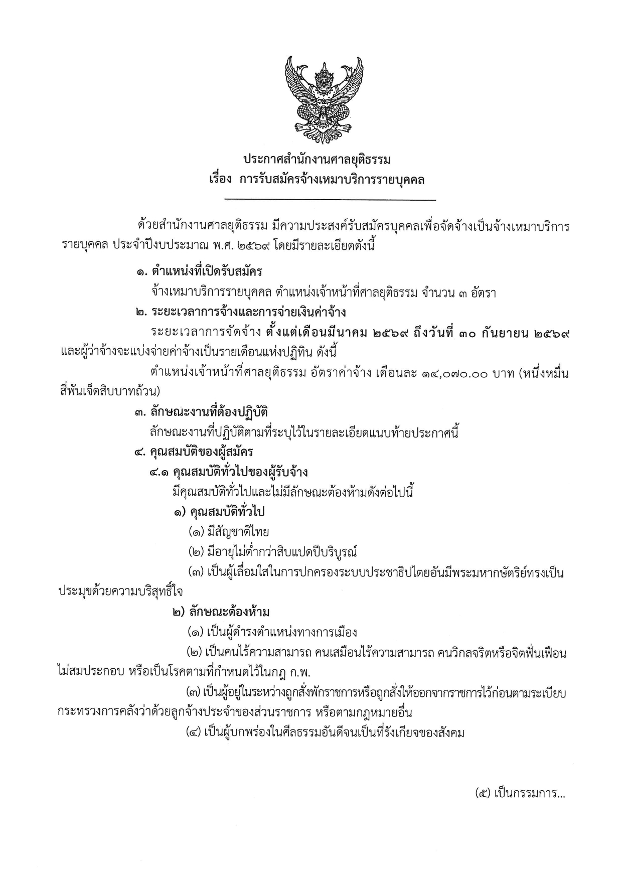 สำนักงานศาลยุติธรรม เปิดรับสมัครงาน / ไม่ต้องผ่าน ภาค ก. / เงินเดือน 14070 / สมัครทาง emil 3 – 13 ก.พ. 2569