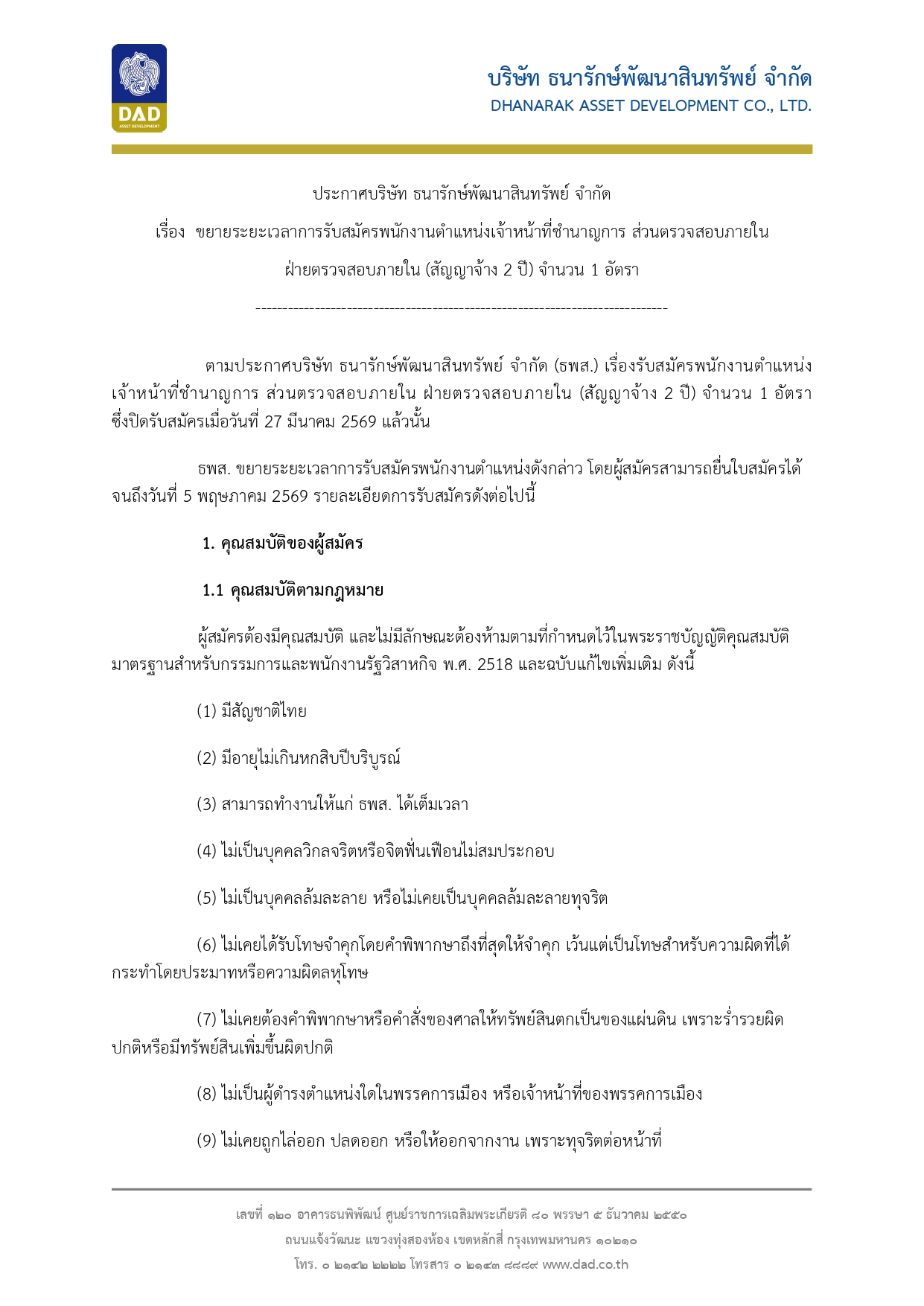 รายละเอียดตำแหน่ง https://www.dad.co.th/career.php