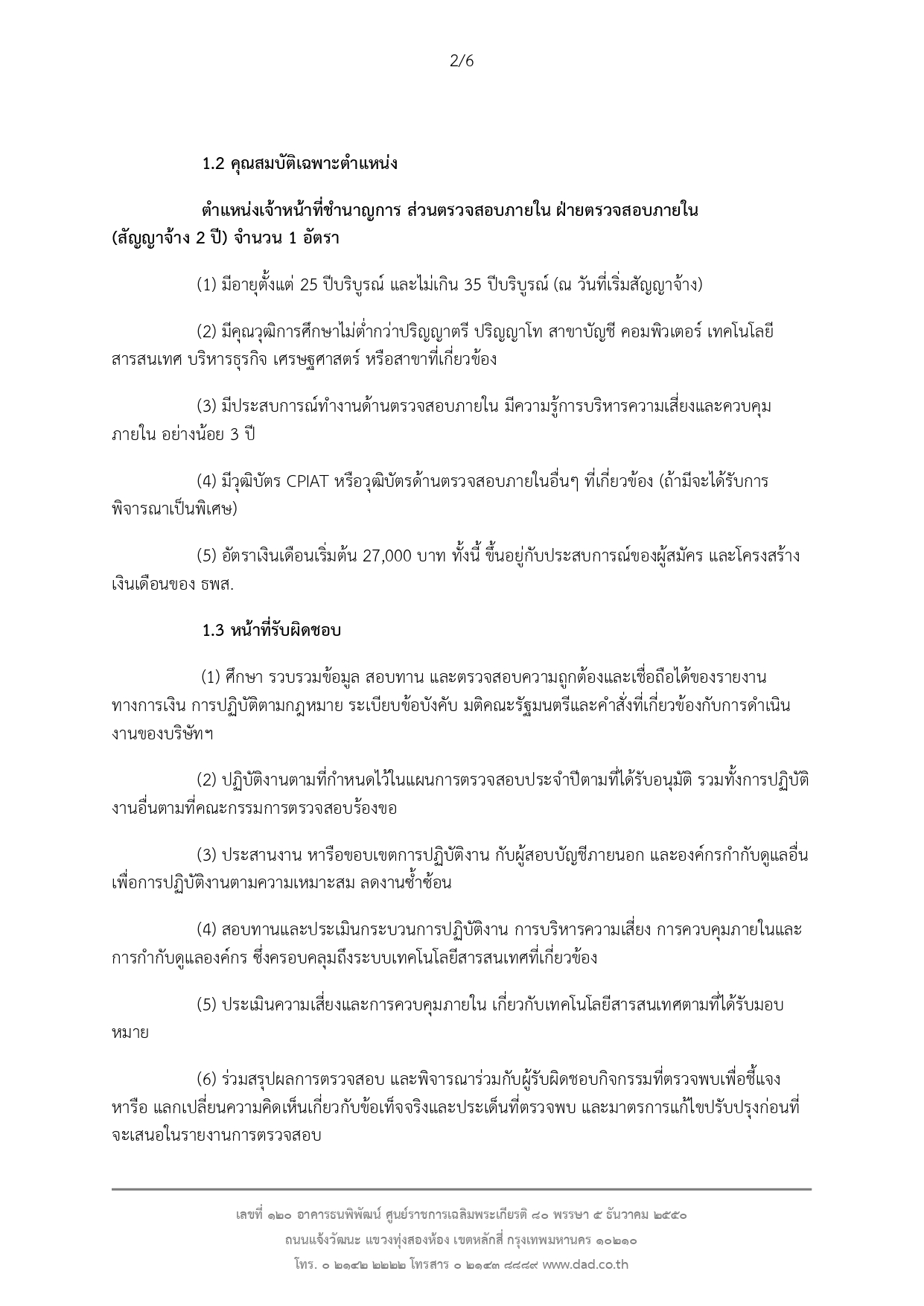 ตำแหน่ง: เจ้าหน้าที่ชำนาญการ ส่วนตรวจสอบภายใน (สัญญาจ้าง 2 ปี)