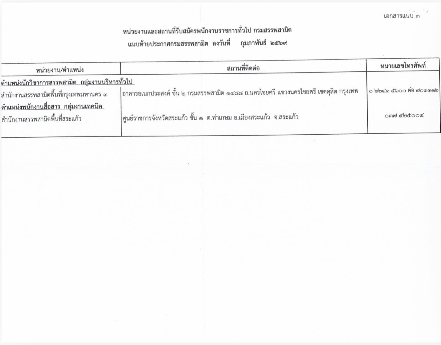 2. ตำแหน่งพนักงานสื่อสาร กลุ่มงานเทคนิค สังกัดสำนักงานสรรพสามิตพื้นที่สระแก้ว