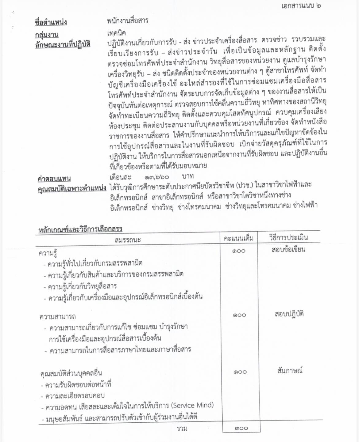 2. ตำแหน่ง พนักงานสื่อสาร (กลุ่มงานเทคนิค) – 1 อัตรา