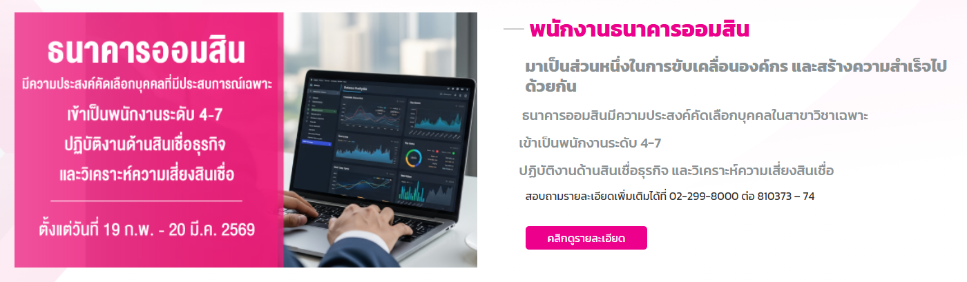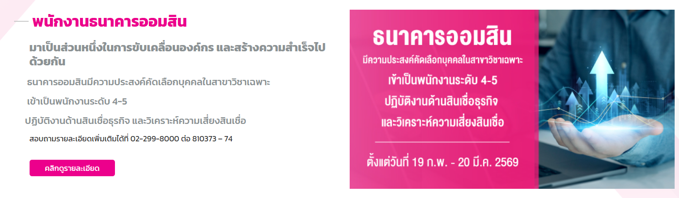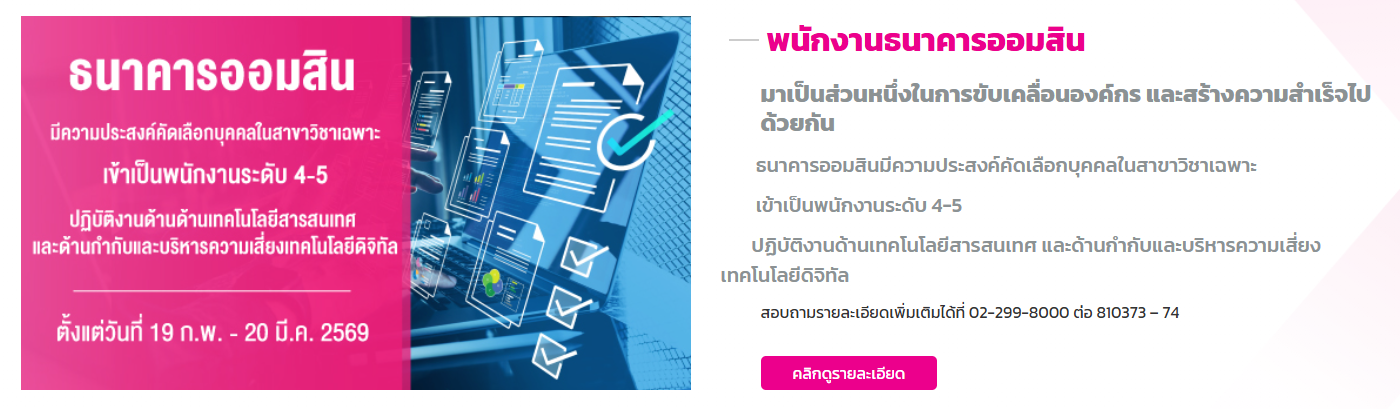 ธนาคารออมสิน เปิดรับสมัครบุคคลภายนอกเข้าเป็นพนักงาน ป.ตรี ขึ้นไป / เงินเดือน 29,000 – 64,550 บาท / สมัคร online บัดนี้ – 1 มีนาคม 2569
