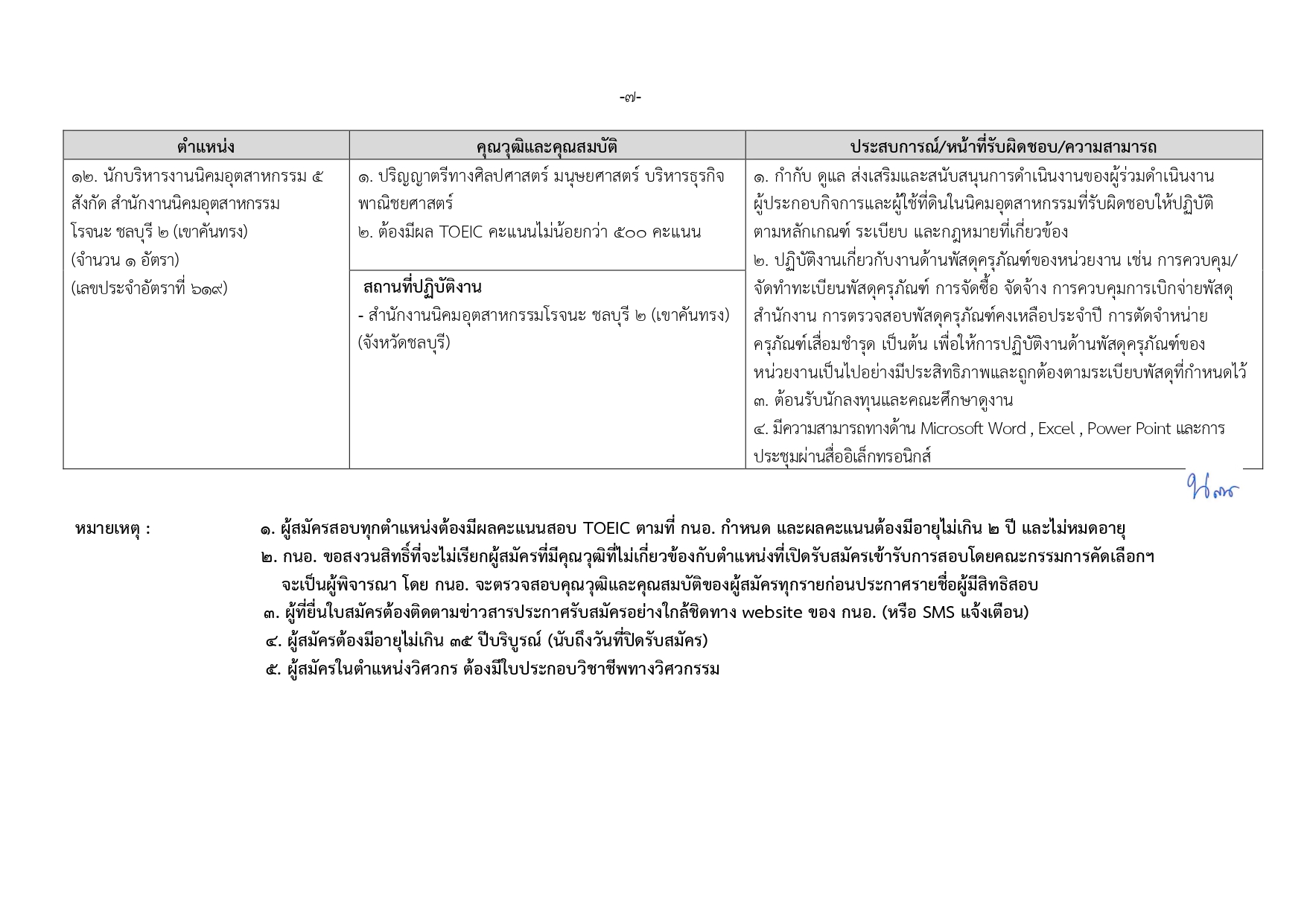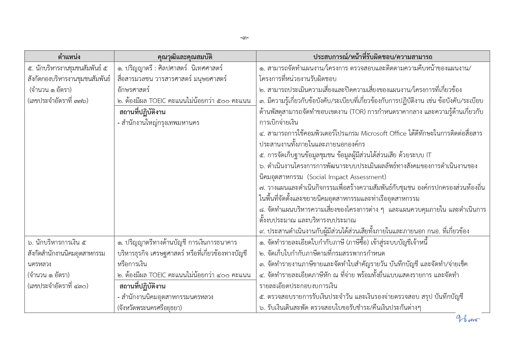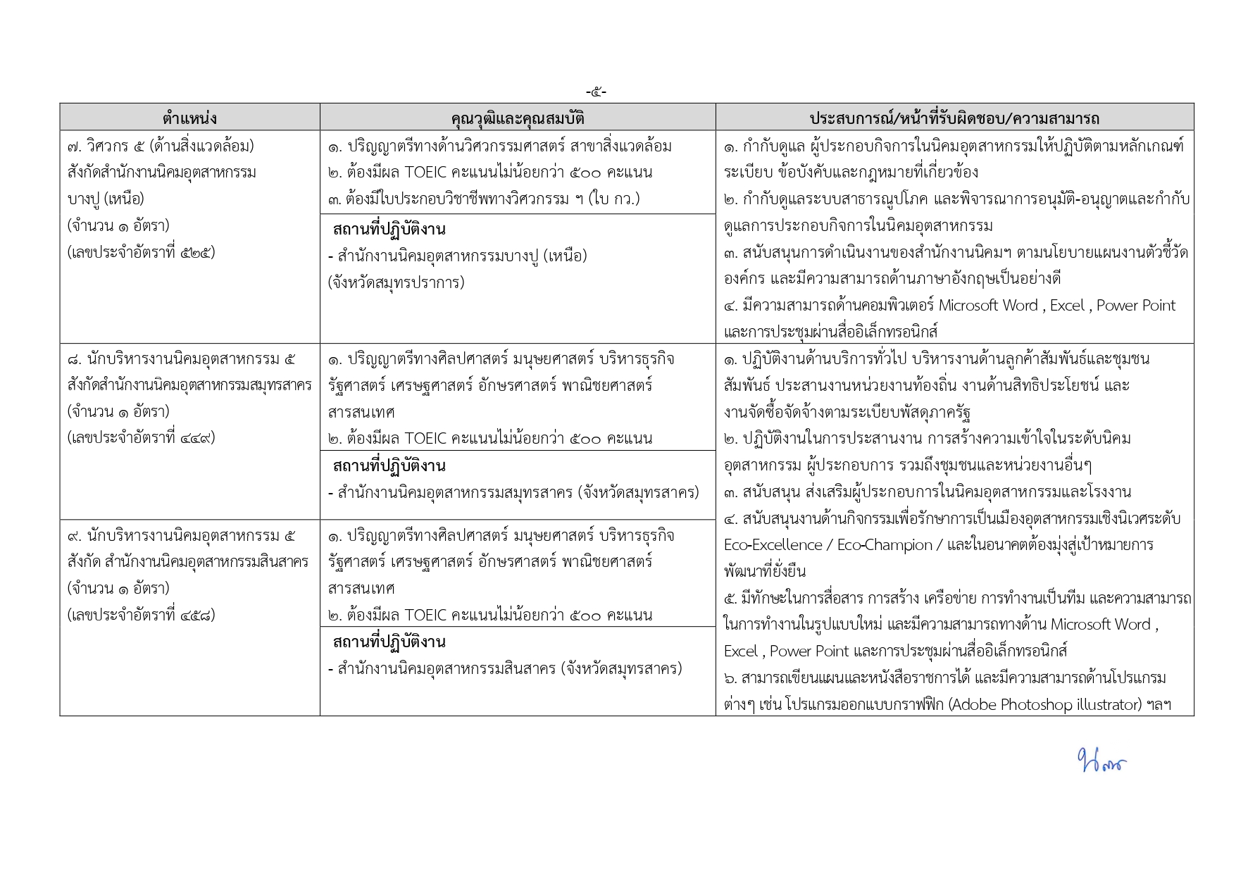 นักบริหารงานนิคมอุตสาหกรรม 5 (3 อัตรา): ป.ตรี สายสังคมศาสตร์/บริหารฯ/เศรษฐศาสตร์ ฯลฯ