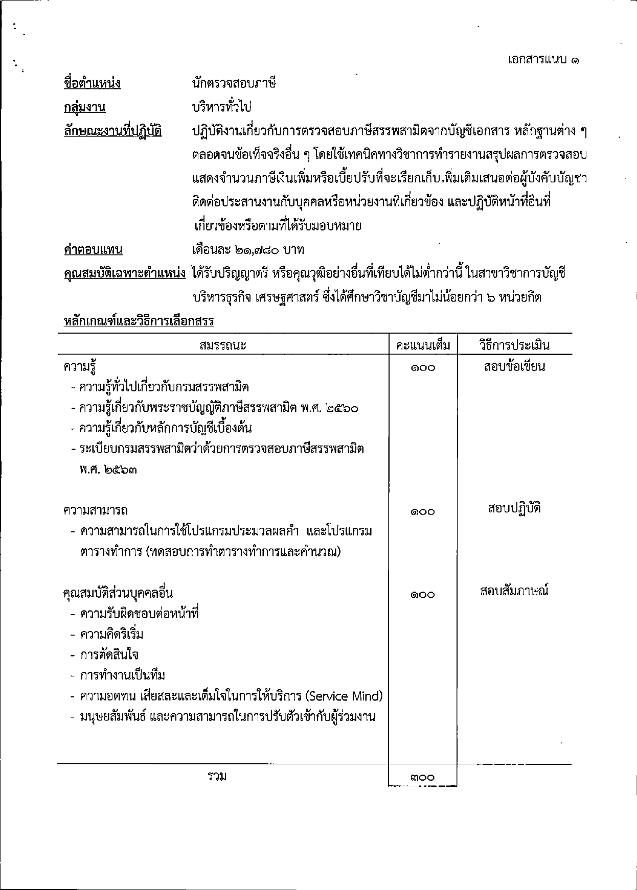 ตำแหน่ง: นักตรวจสอบภาษี (จำนวน 1 อัตรา)