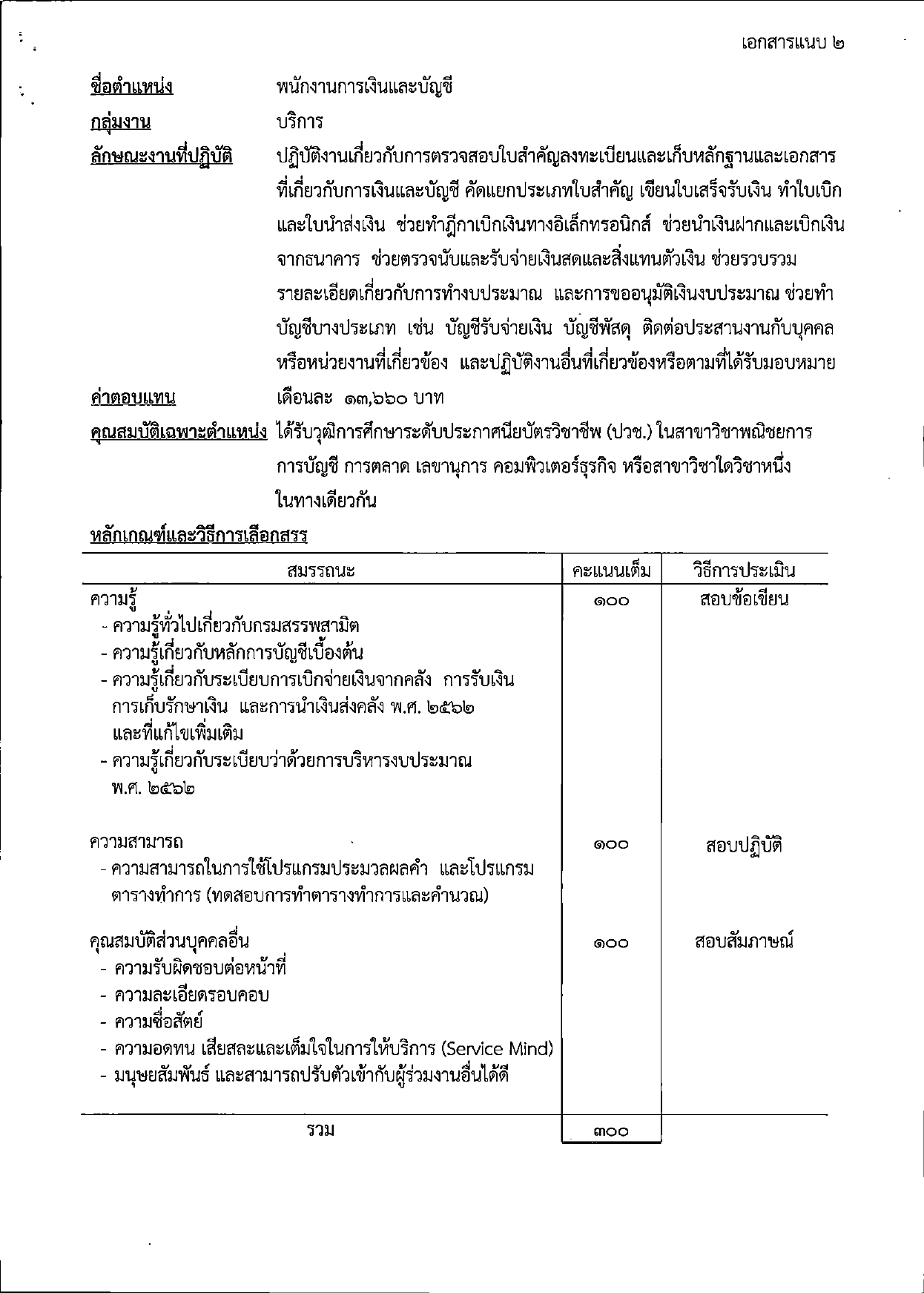 ตำแหน่ง: พนักงานการเงินและบัญชี (จำนวน 4 อัตรา)