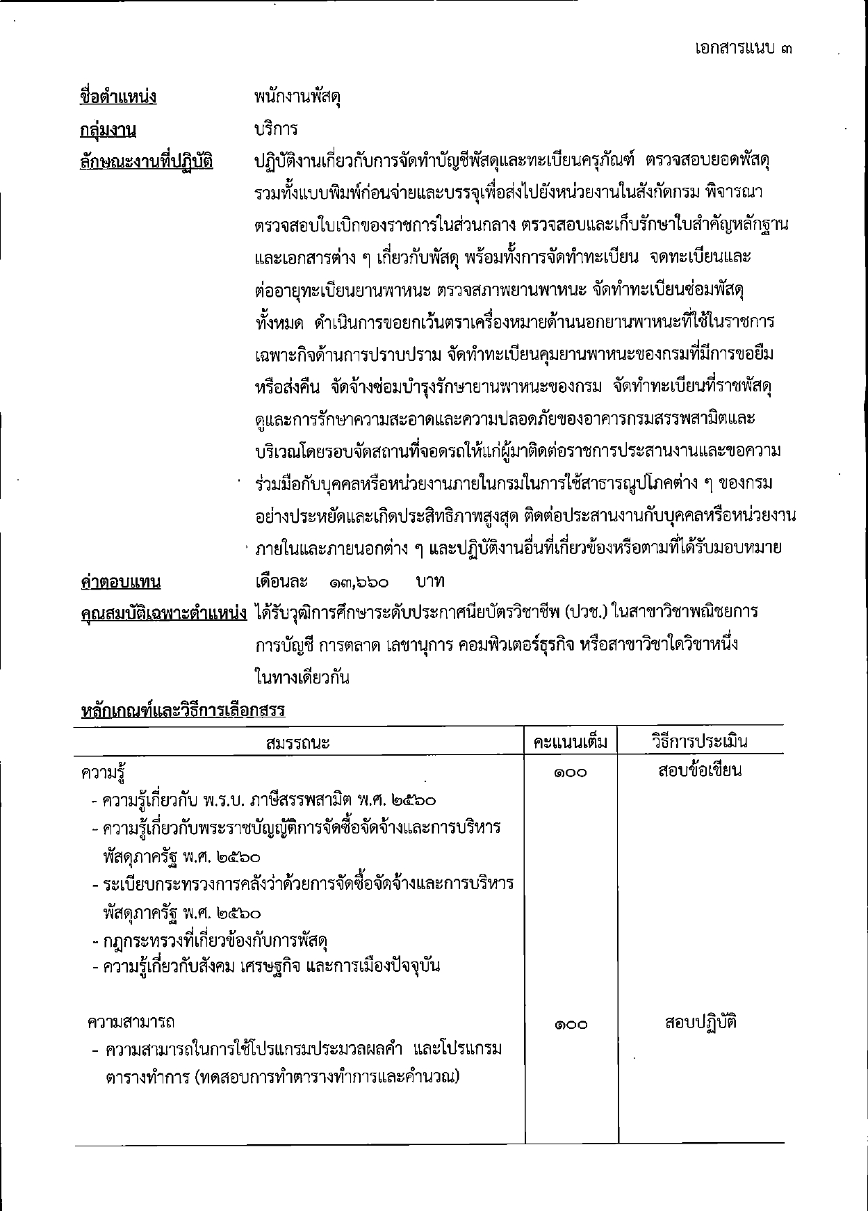 ตำแหน่ง: พนักงานพัสดุ (จำนวน 1 อัตรา)