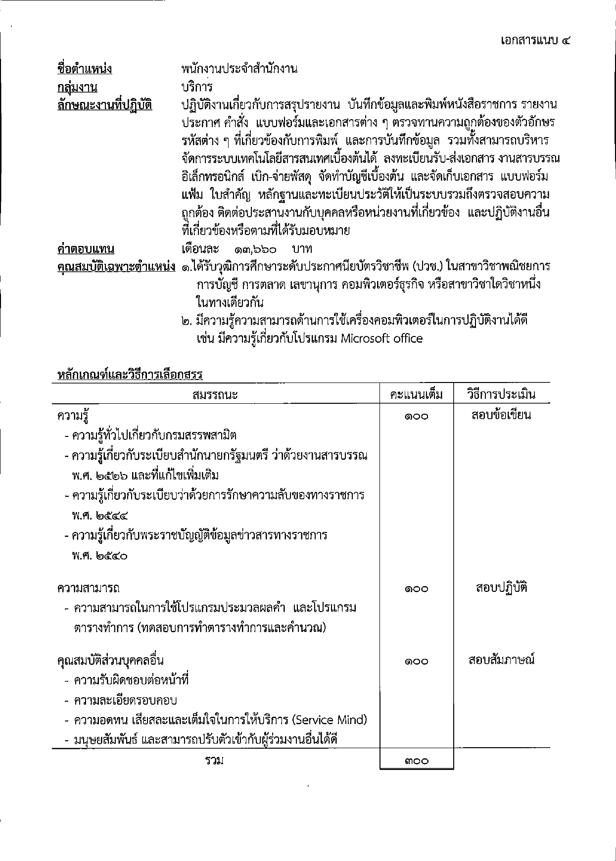 ตำแหน่ง: พนักงานประจำสำนักงาน (จำนวน 1 อัตรา)