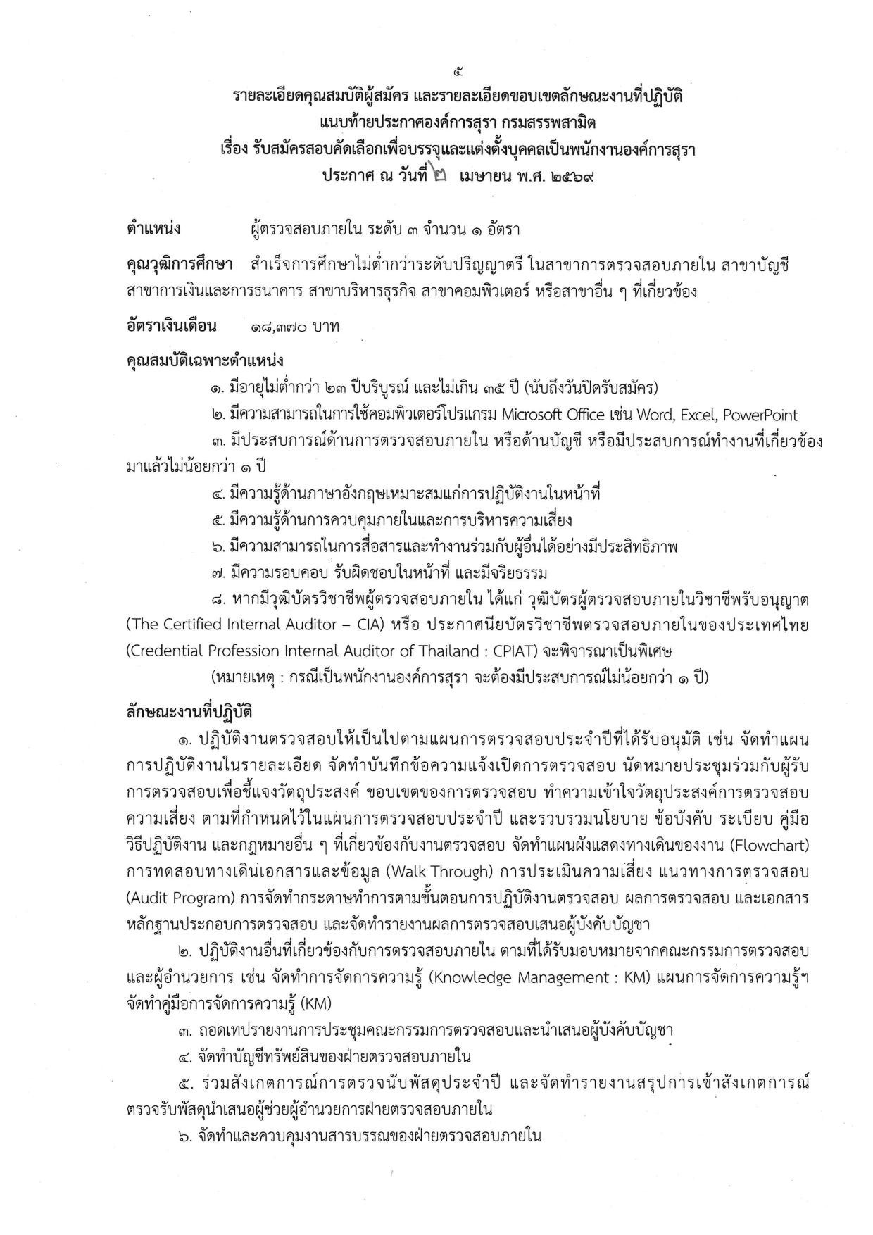 กรณีพิเศษ: หากมีวุฒิบัตรวิชาชีพผู้ตรวจสอบภายใน (CIA) หรือ (CPIAT) จะได้รับการพิจารณาเป็นพิเศษ!