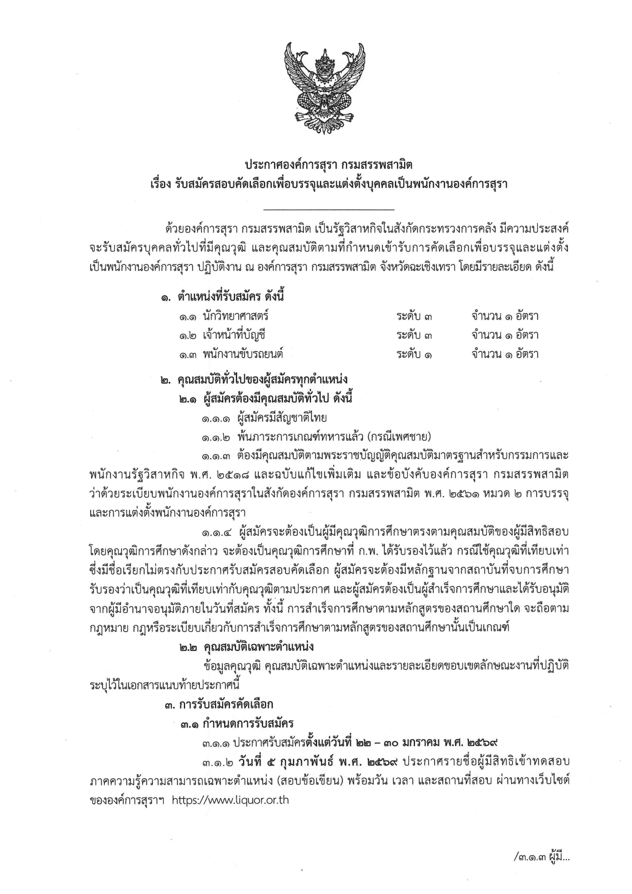 ใบสมัครได้ที่เว็บไซต์ www.liquor.or.th