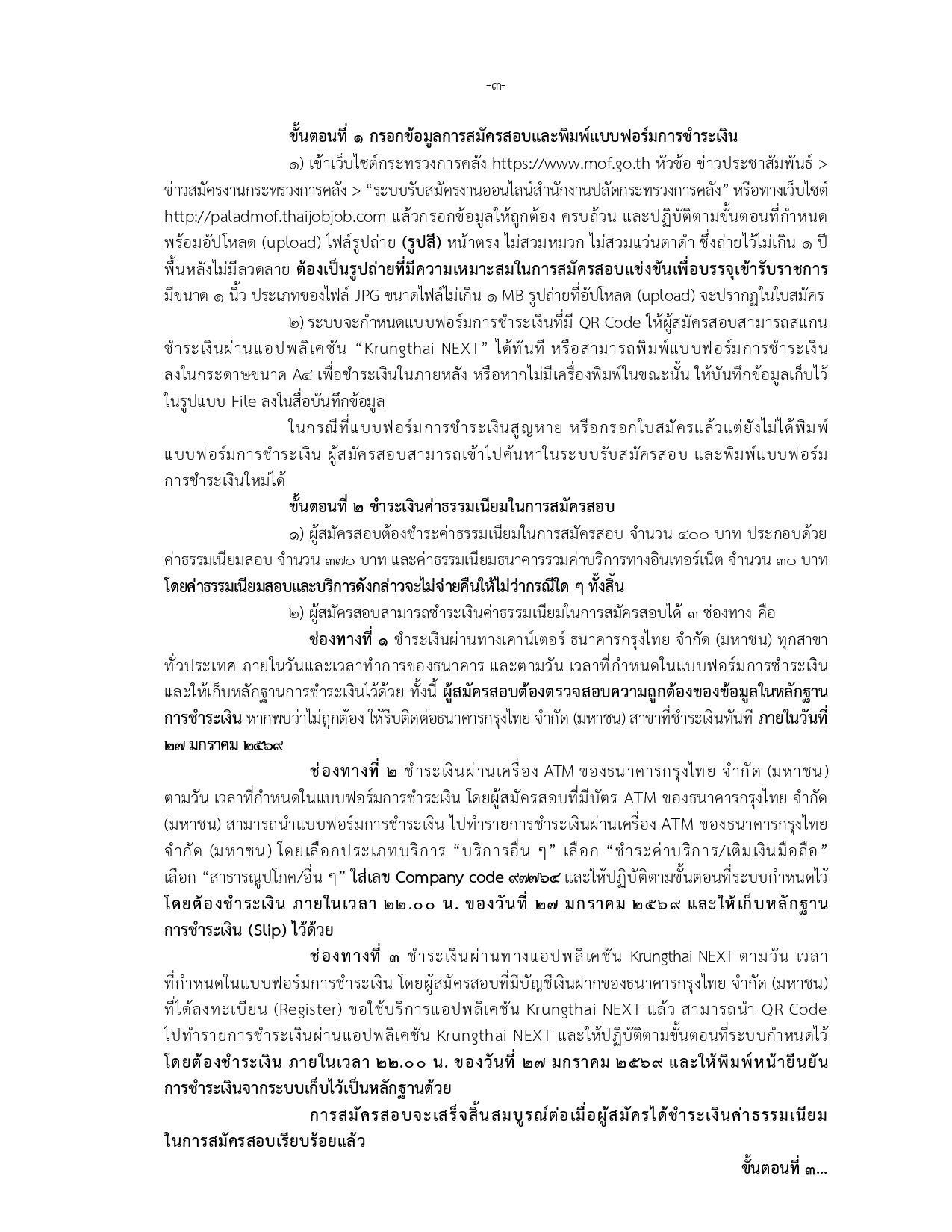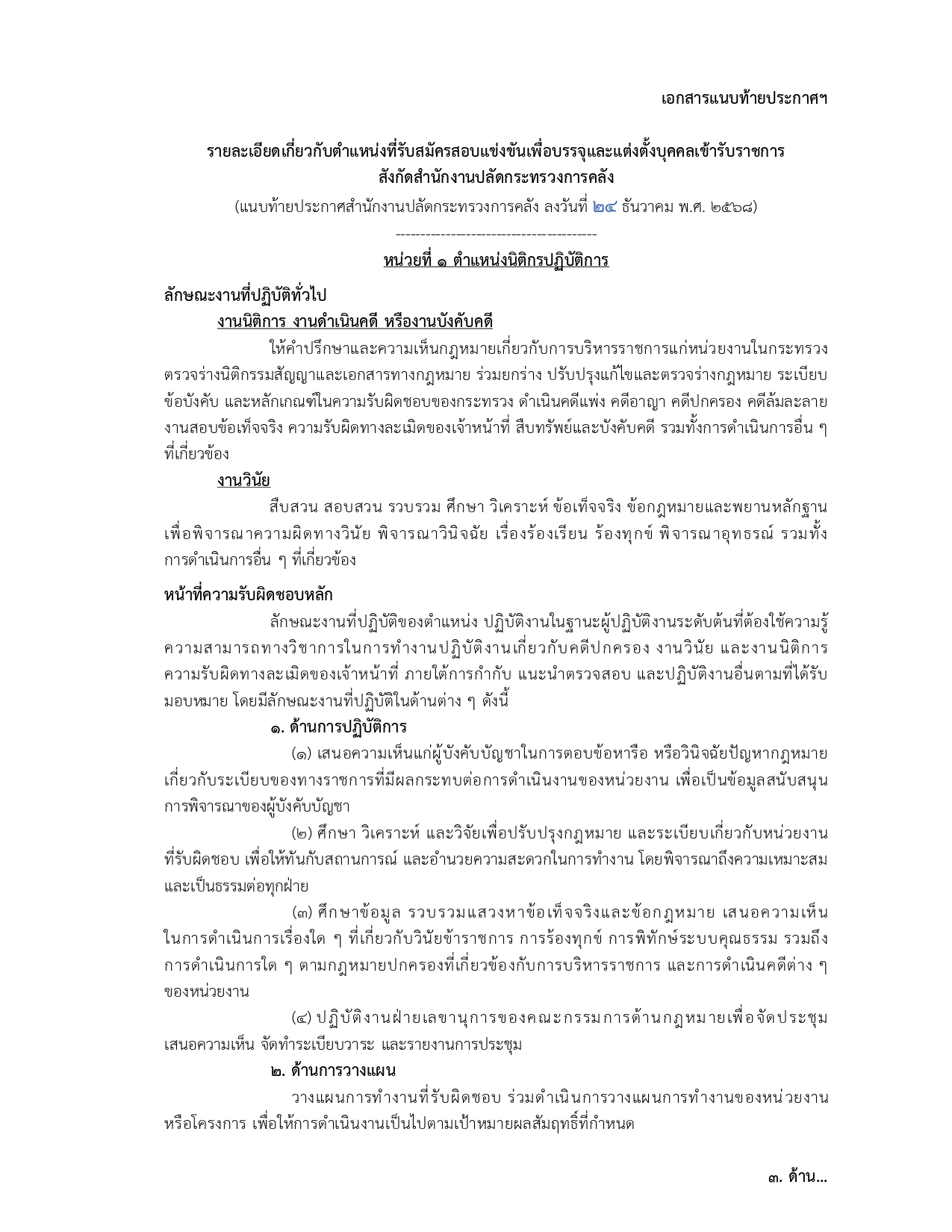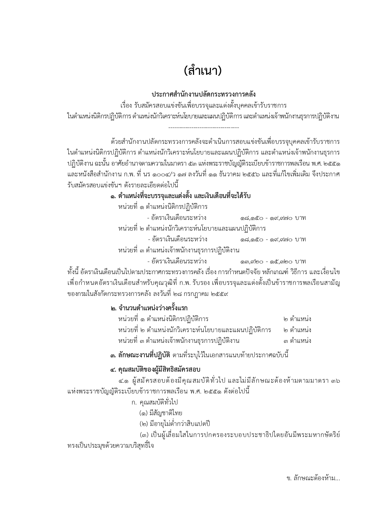 คลิกที่นี่เพื่ออ่าน ประกาศสำนักงานปลัดกระทรวงการคลัง เรื่อง รับสมัครสอบแข่งขันเพื่อบรรจุและแต่งตั้งบุคคลเข้ารับราชการ ในตำแหน่งนิติกรปฏิบัติการ ตำแหน่งนักวิเคราะห์นโยบายและแผนปฏิบัติการ และตำแหน่งเจ้าพนักงานธุรการปฏิบัติงาน