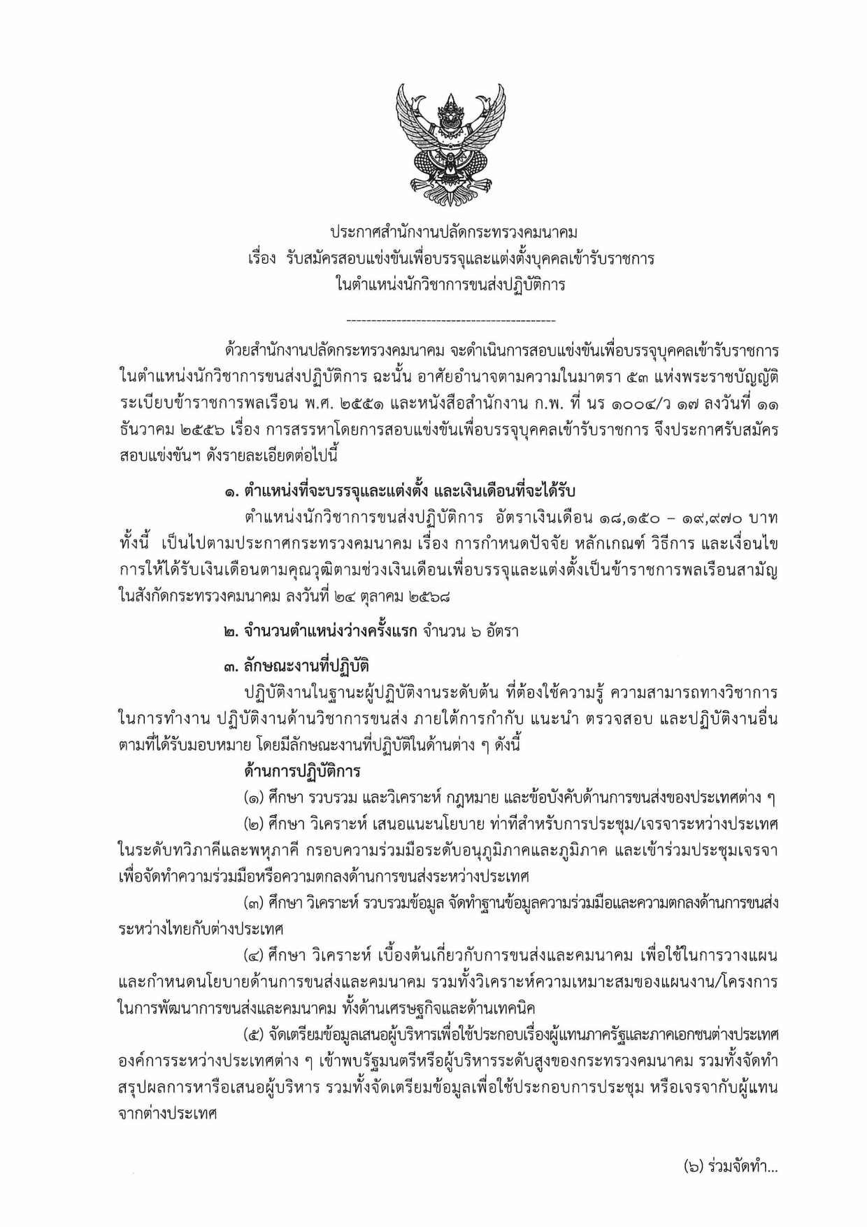 ในตำแหน่งนักวิชาการขนส่งปฏิบัติการ โดยมีรายละเอียดดังนี้