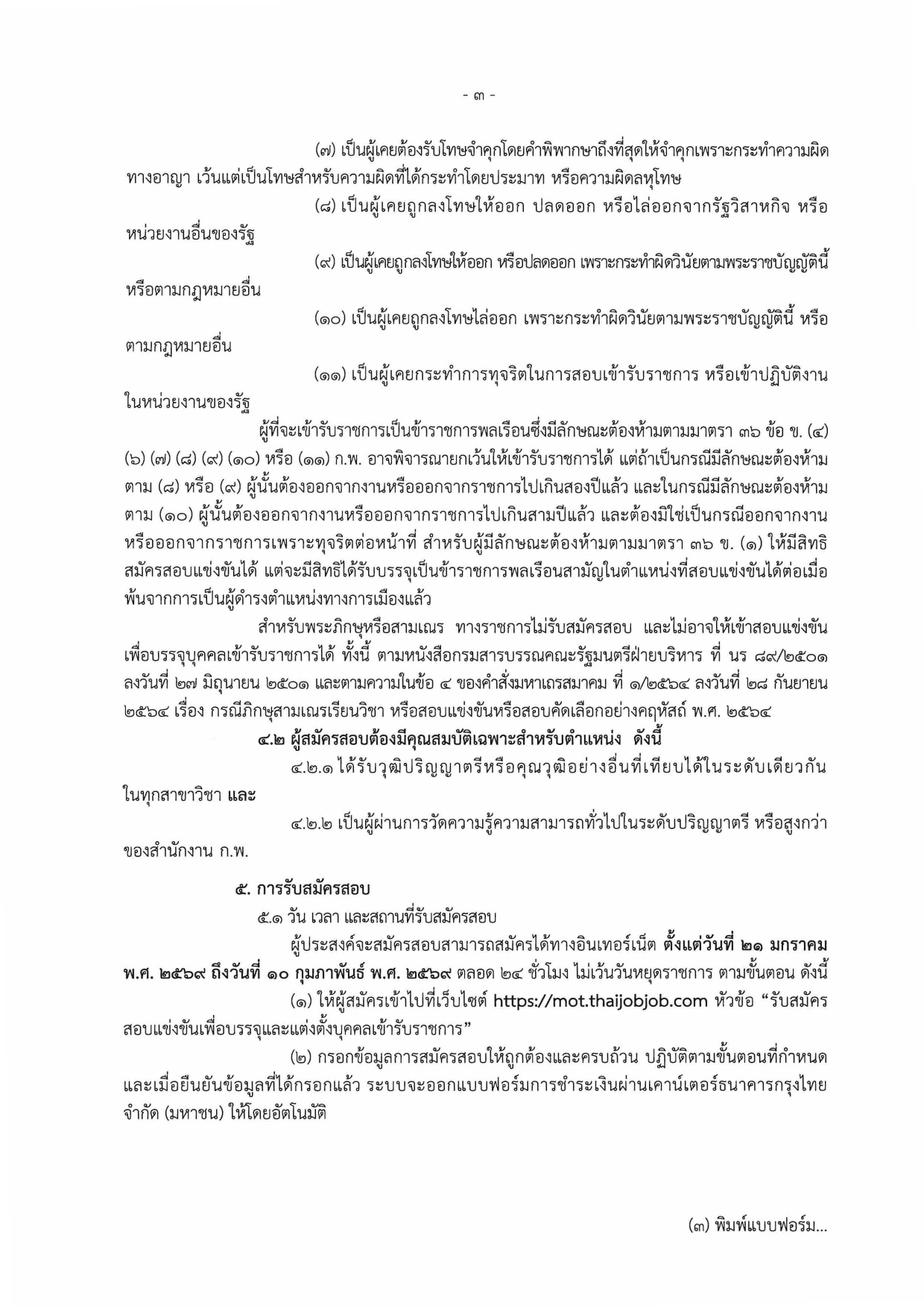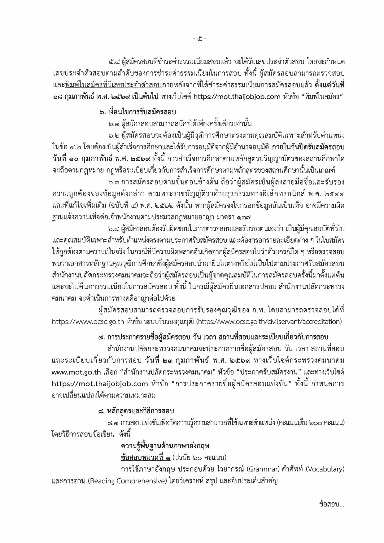 กระทรวงคมนาคม รับสมัครสอบแข่งขันเพื่อบรรจุและแต่งตั้งบุคคลเข้ารับราชการ หลายอัตรา ป.ตรี ทุกสาขา / เงินเดือน 18150 / สมัครทางอินเทอร์เน็ต 21 มกราคม -10 กุมภาพันธ์ 2569