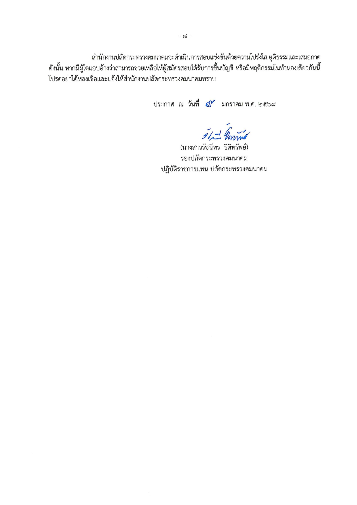 ประกาศสำนักงานปลัดกระทรวงคมนาคม