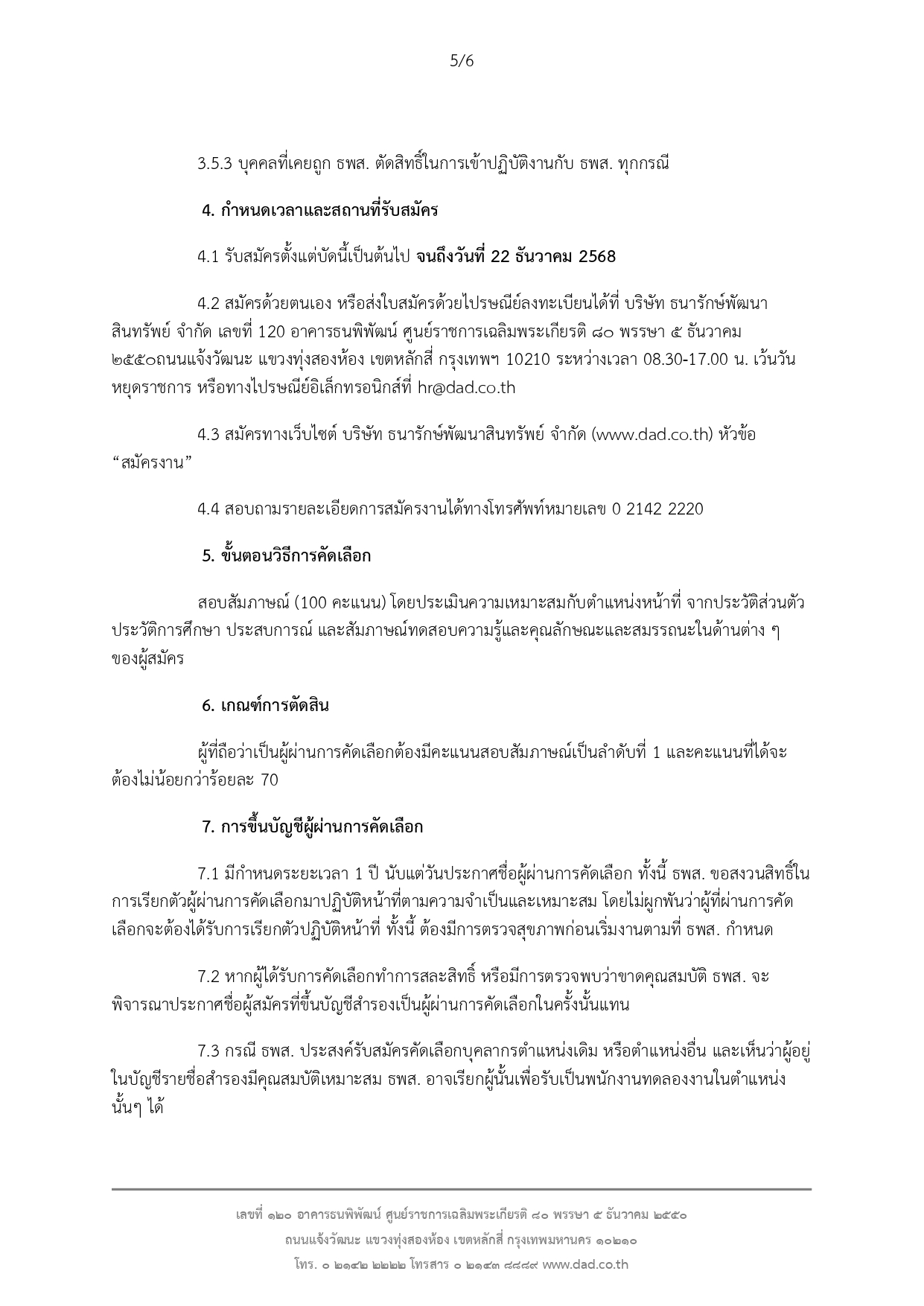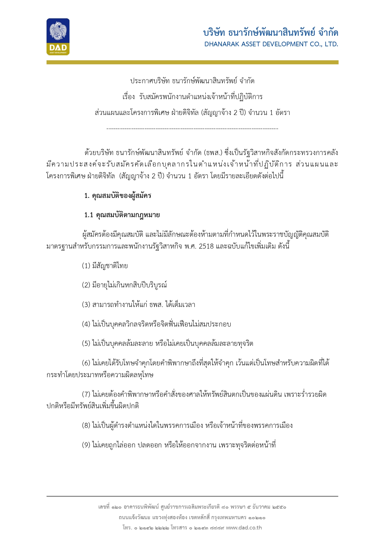 ประกาศรับสมัครพนักงาน บริษัท ธนารักษ์พัฒนาสินทรัพย์ จำกัด (ธพส.)