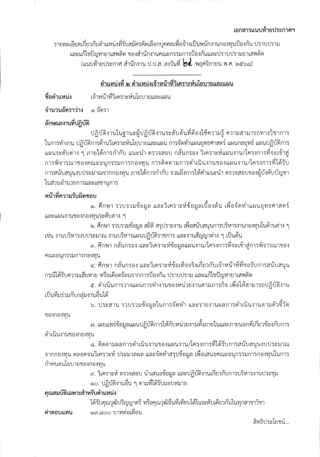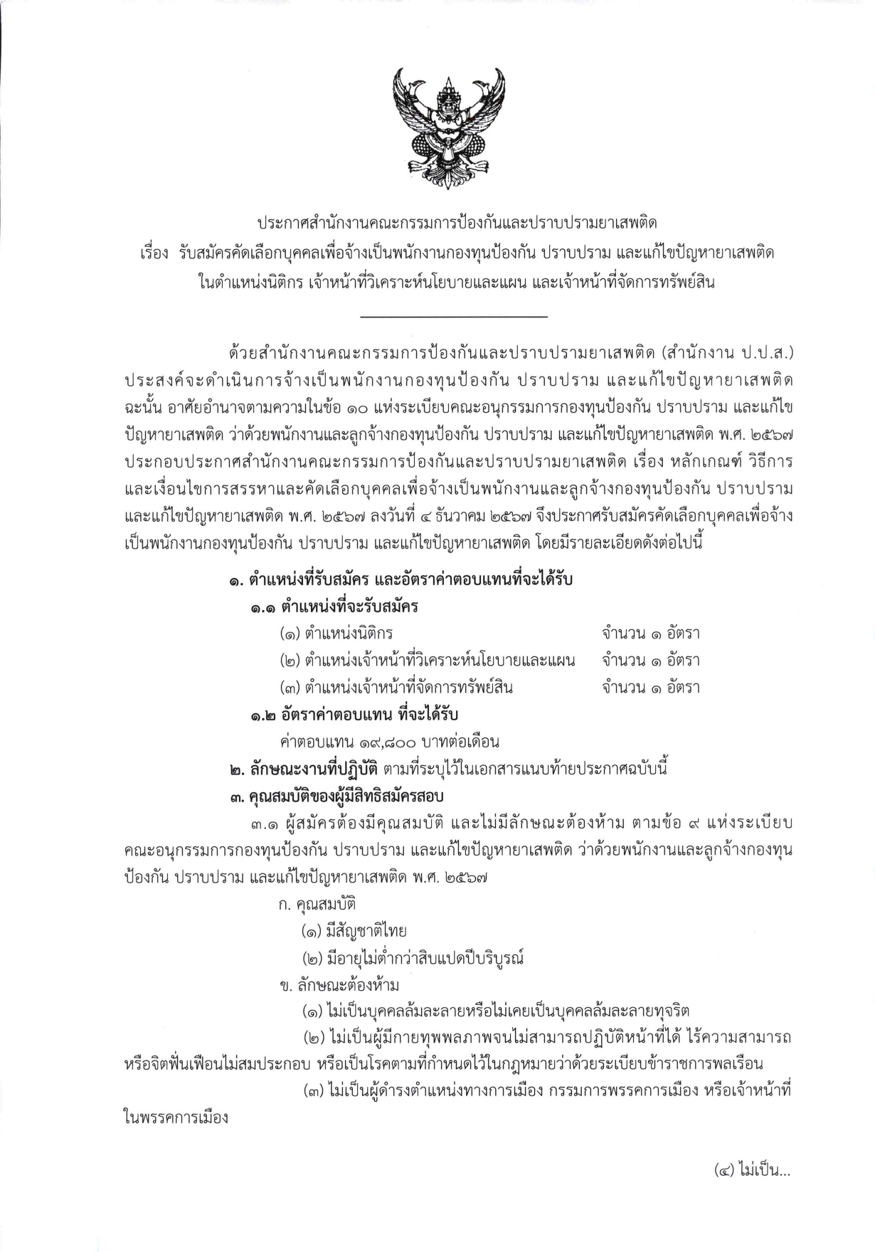 ประกาศรับสมัครคัดเลือกบุคคลเพื่อจ้างเป็นพนักงานกองทุนป้องกัน ปราบปราม และแก้ไขปัญหายาเสพติด