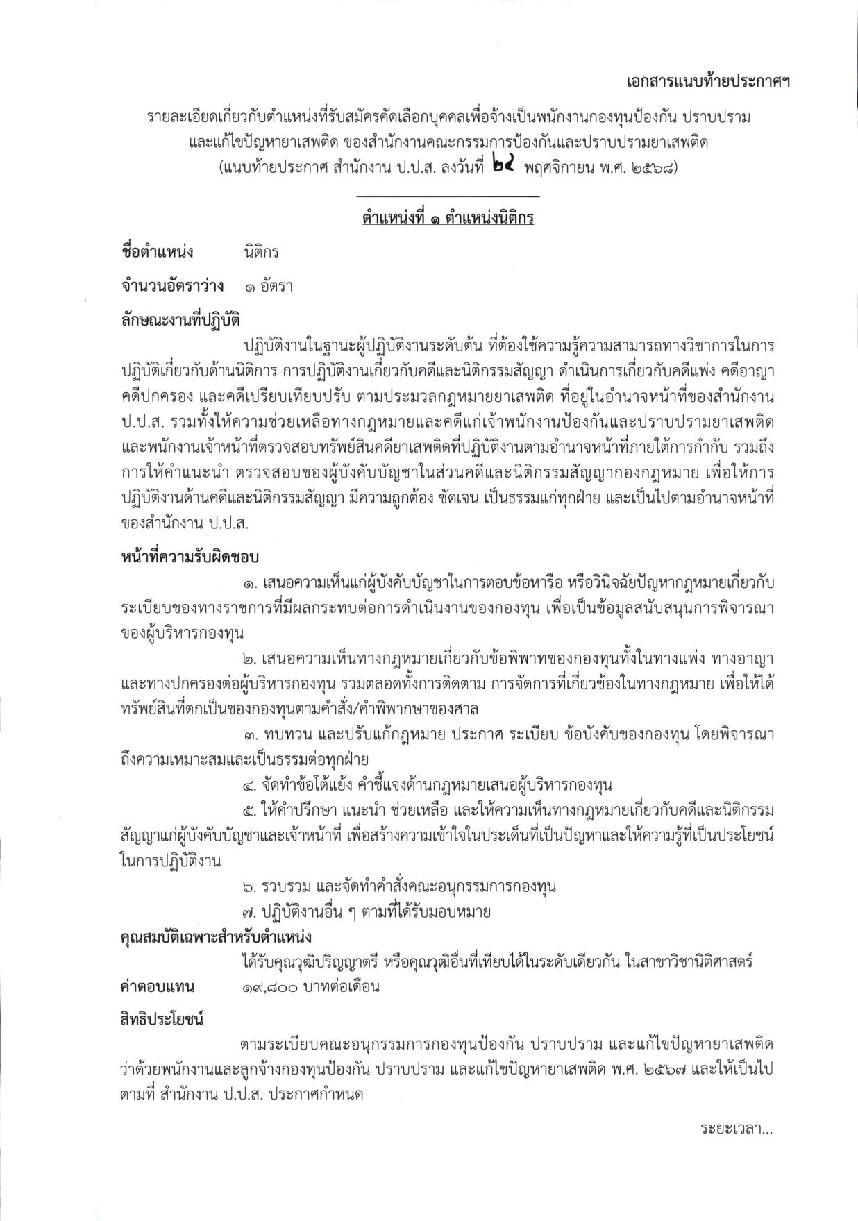 1.1 ตำแหน่งนิติกร (1 อัตรา)