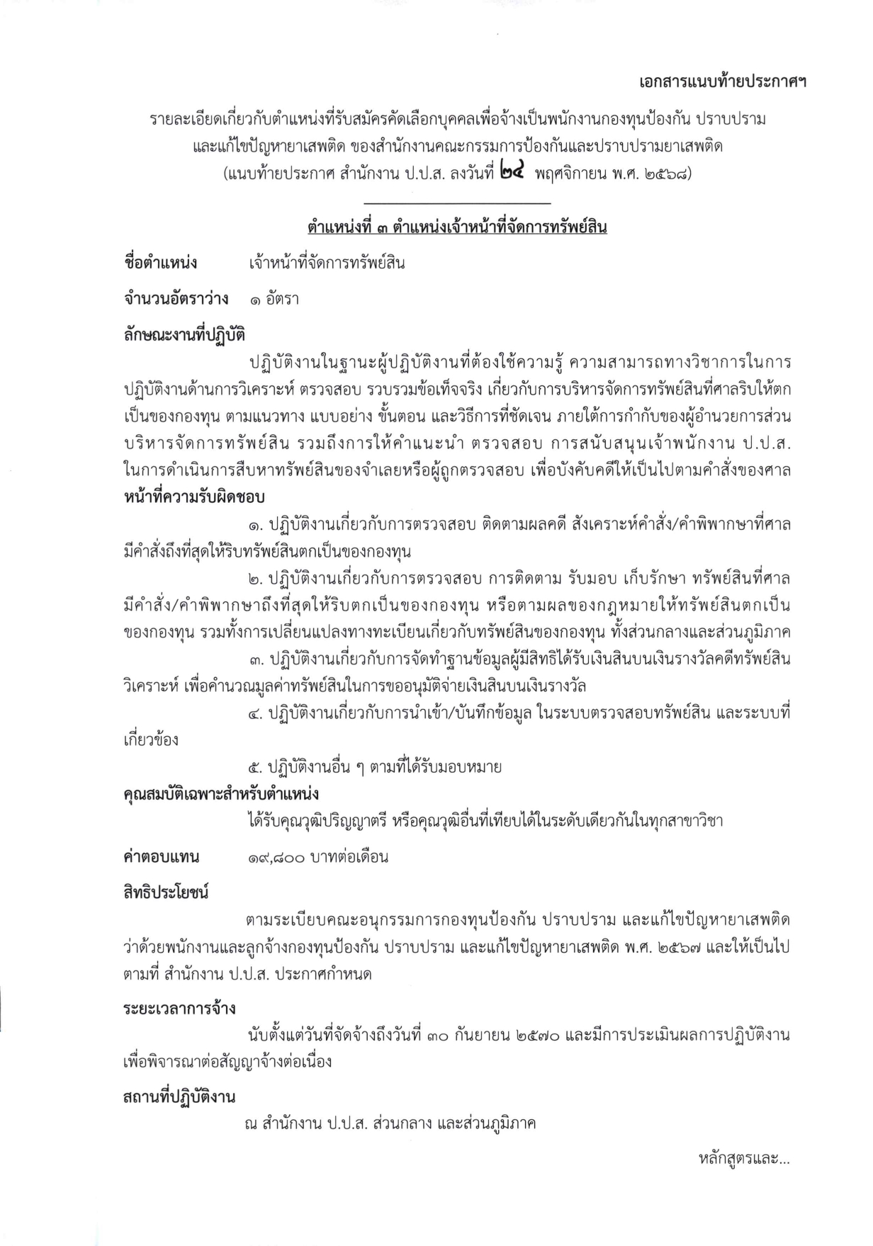 1.3 ตำแหน่งเจ้าหน้าที่จัดการทรัพย์สิน (1 อัตรา)