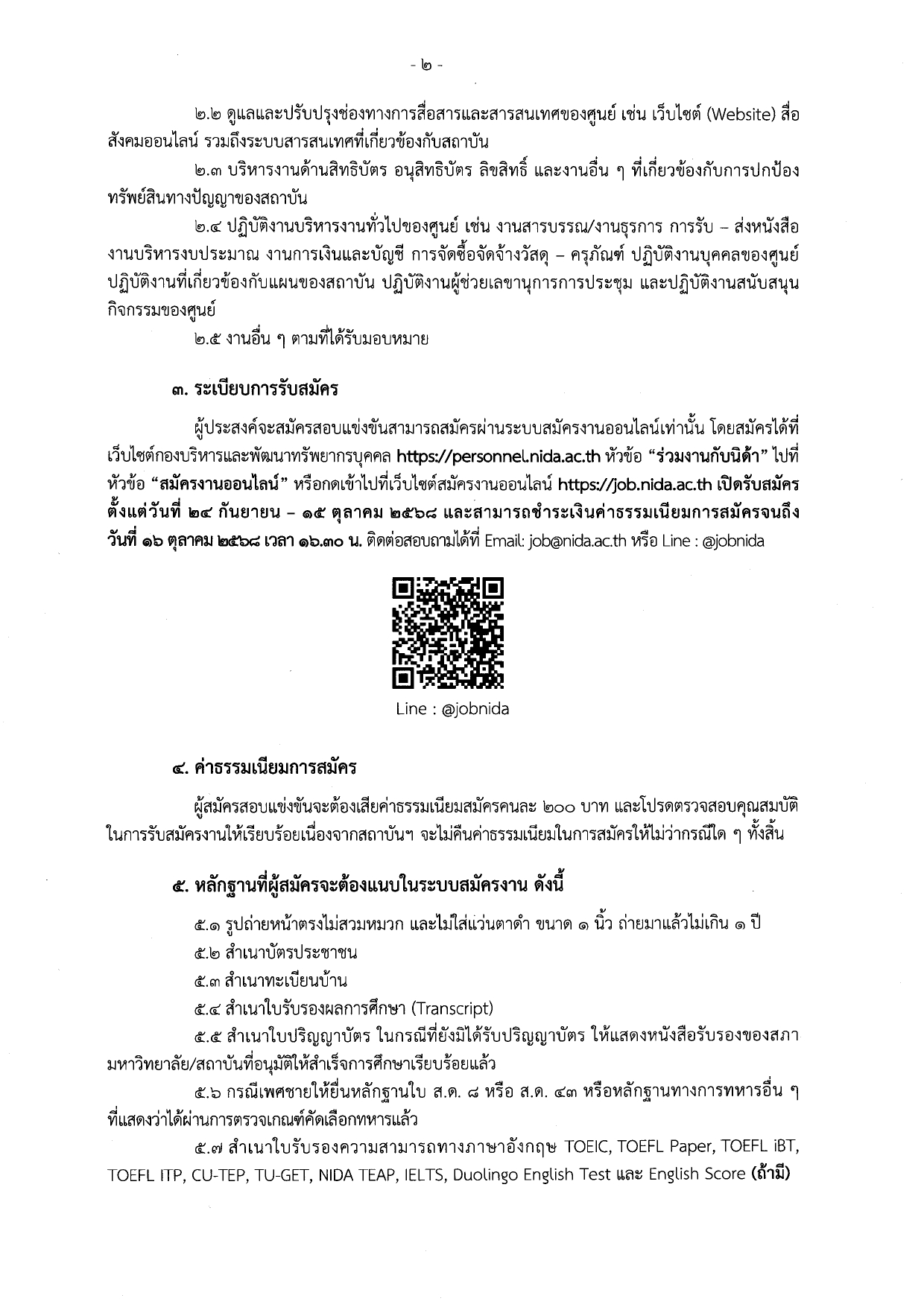 - ทางเว็บไซต์สมัคร/รายละเอียดเพิ่มเติม http://personnel.nida.ac.th/job/