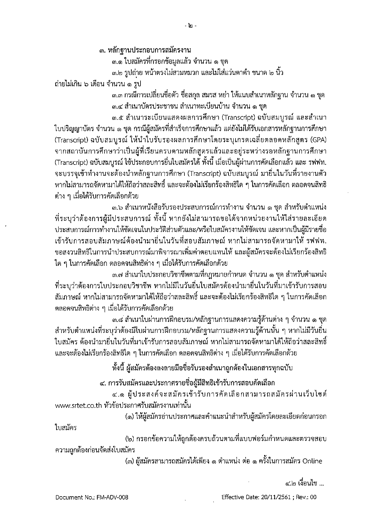 ผู้ประสงค์จะสมัครเข้ารับการคัดเลือกสามารถสมัครผ่านเว็บไซต์ https://www.srtet.co.th/th/career หัวข้อประกาศรับสมัครงานเท่านั้น