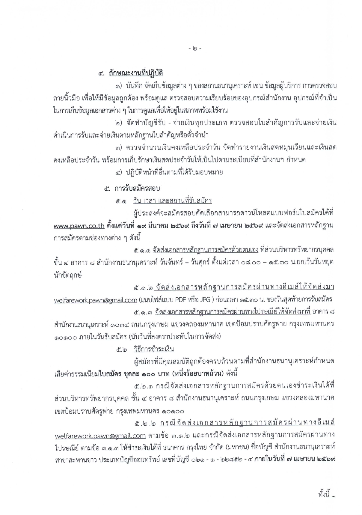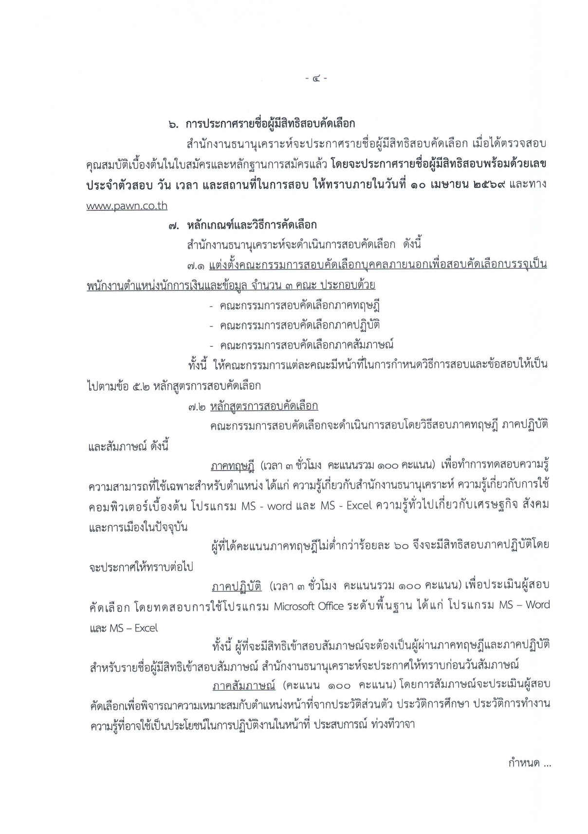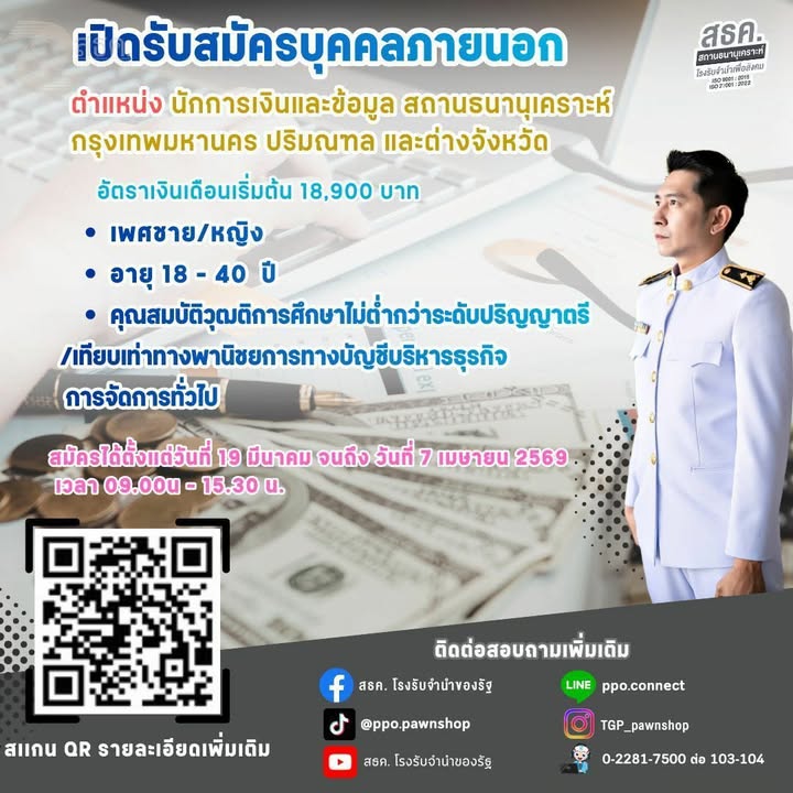 ประกาศรายชื่อผู้มีสิทธิ์สอบ: 10 เมษายน 2569 (ทาง www.pawn.co.th)
