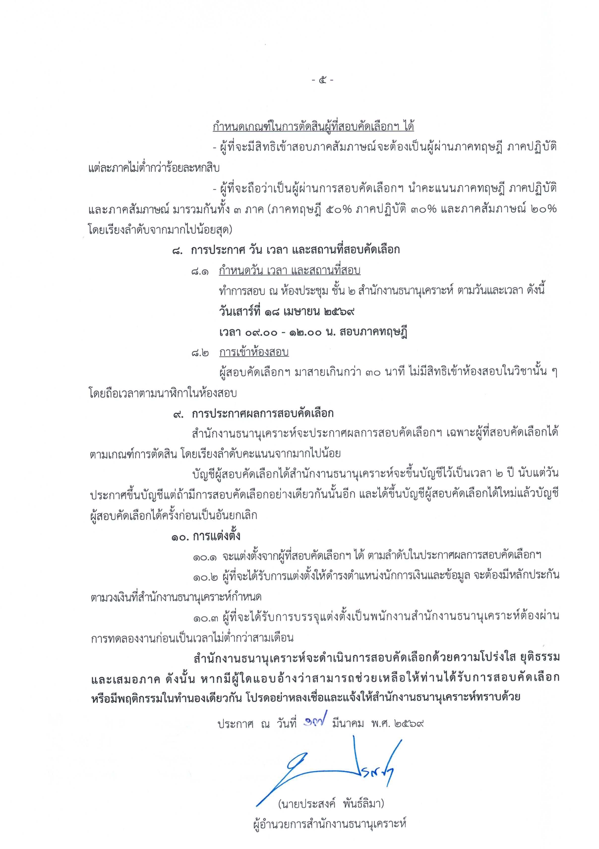 สอบภาคทฤษฎี: วันเสาร์ที่ 18 เมษายน 2569 (09.00 – 12.00 น.) ณ สำนักงานธนานุเคราะห์