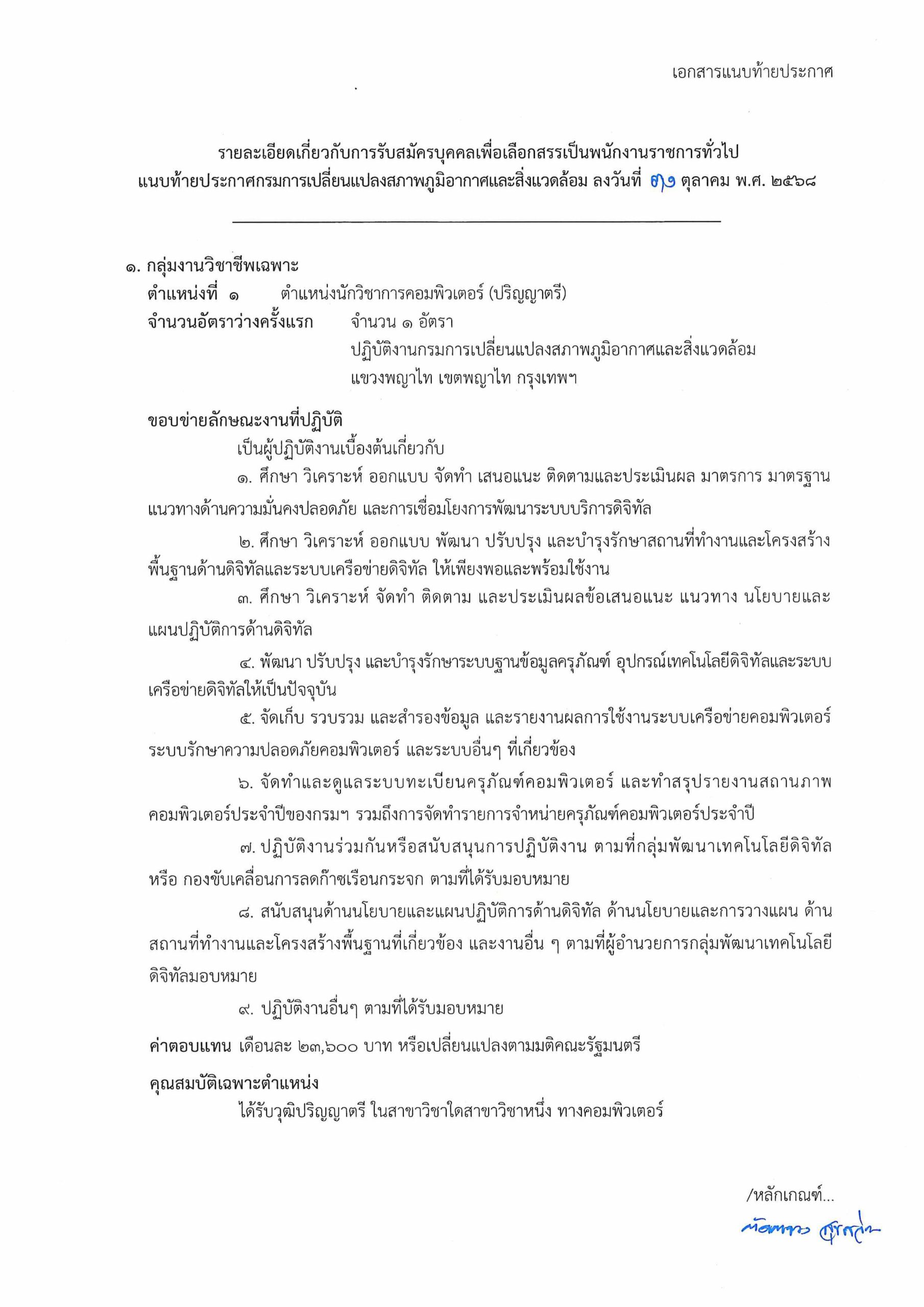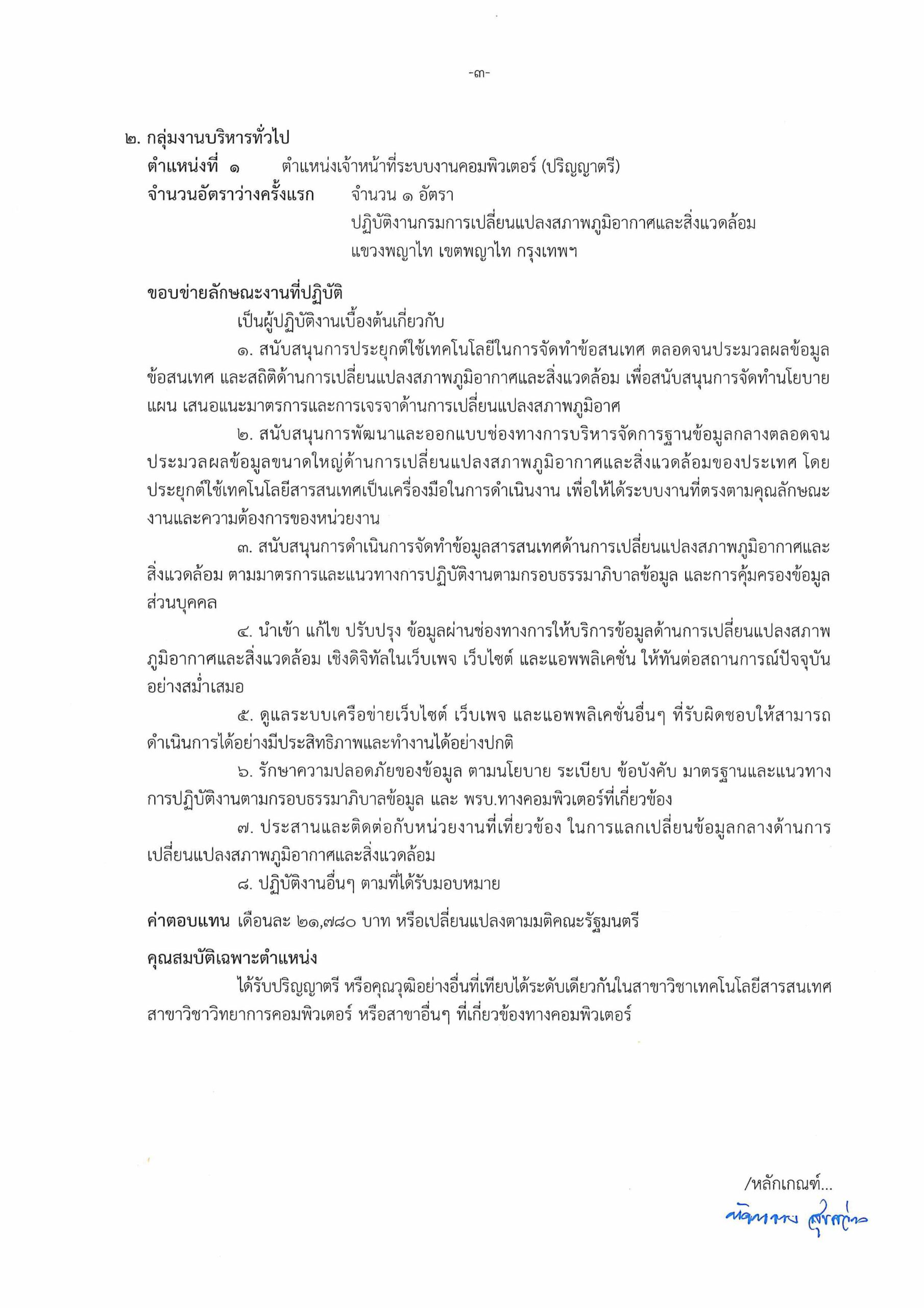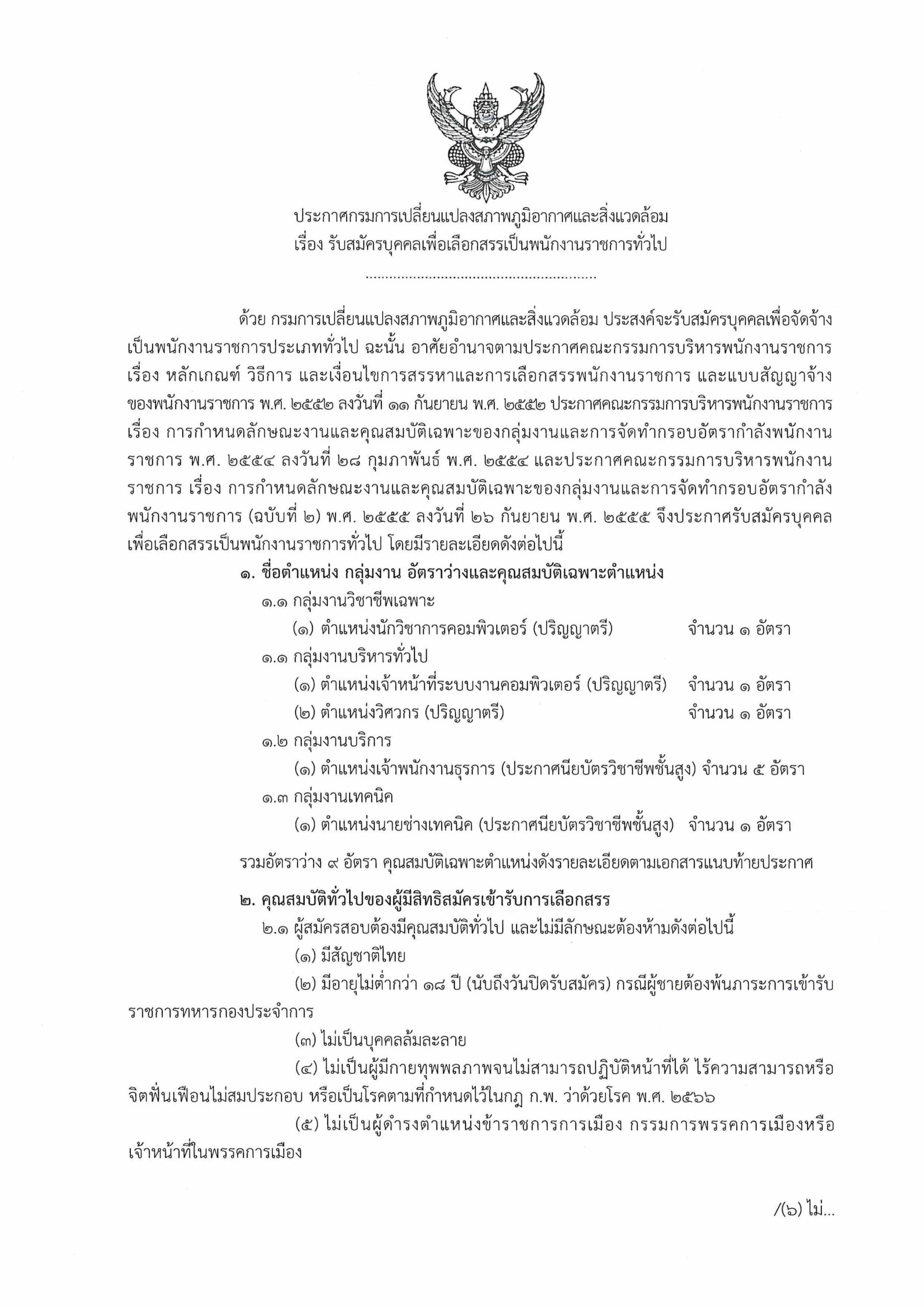 - คลิกที่นี่เพื่ออ่าน ประกาศกรมการเปลี่ยนแปลงสภาพภูมิอากาศและสิ่งแวดล้อม เรื่อง รับสมัครบุคคลเพื่อเลือกสรรเป็นพนักงานราชการทั่วไป