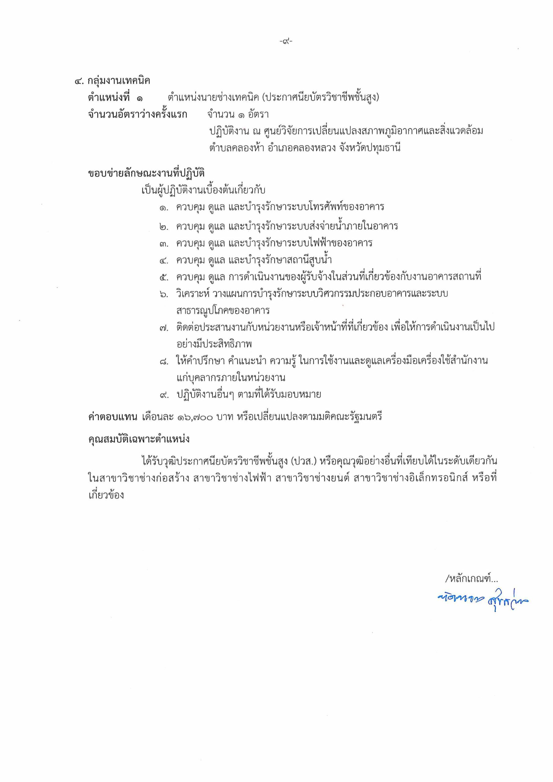 สถานที่ปฏิบัติงาน: ศูนย์วิจัยการเปลี่ยนแปลงสภาพภูมิอากาศและสิ่งแวดล้อม จังหวัดปทุมธานี