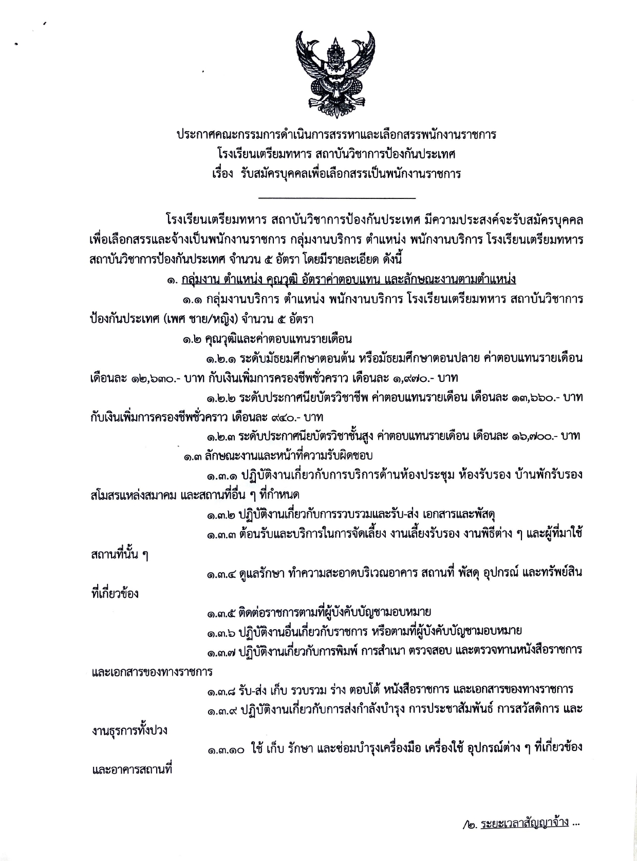 ประกาศคณะกรรมการดำเนินการสรรหาและเลือกสรรพนักงานราชการ สถาบันวิชาการป้องกันประเทศ