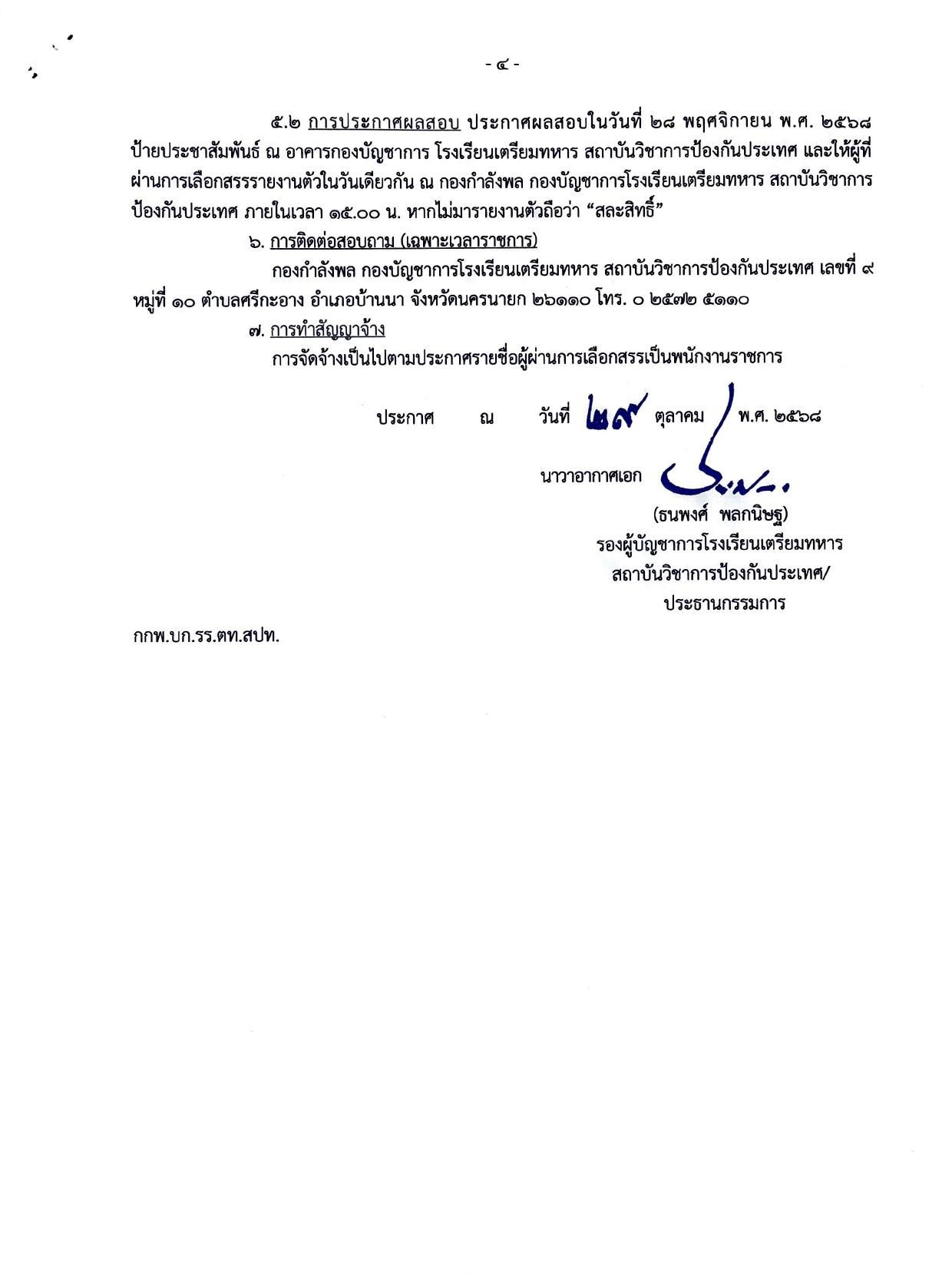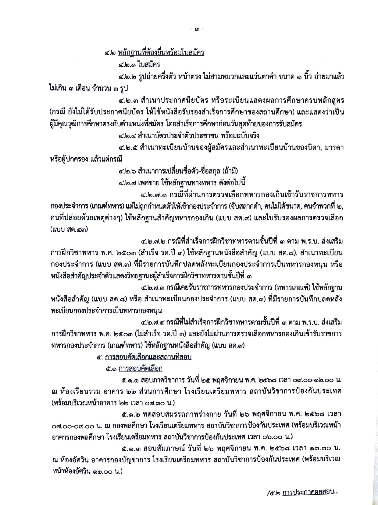 - สอบสัมภาษณ์: วันที่ 20 พฤศจิกายน พ.ศ. 2568 เวลา 12.30 น. ณ ห้องสัมมนา อาคารศูนย์นวัตกรรมการศึกษาทางทหาร สปท.