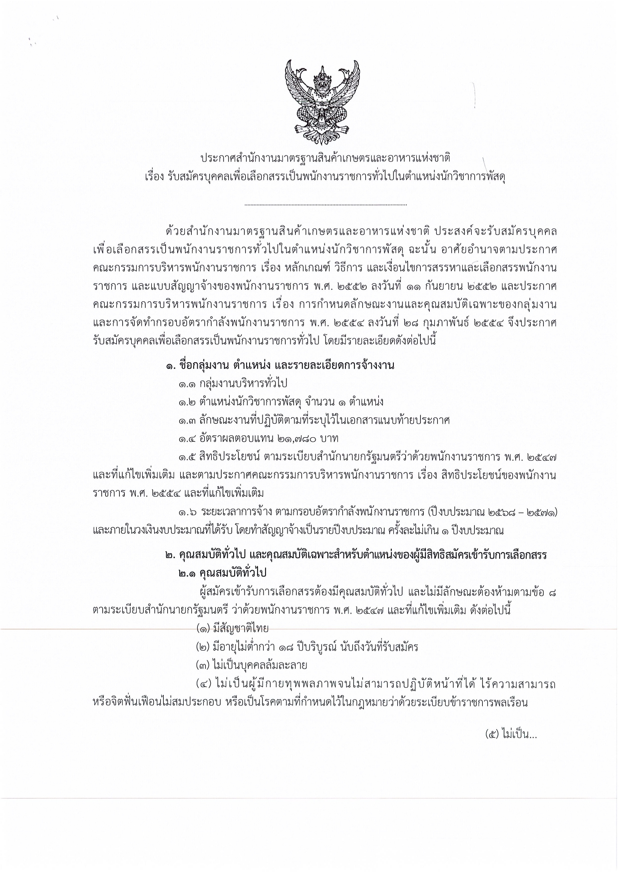 ประกาศรับสมัครพนักงานราชการทั่วไป (มกอช.)