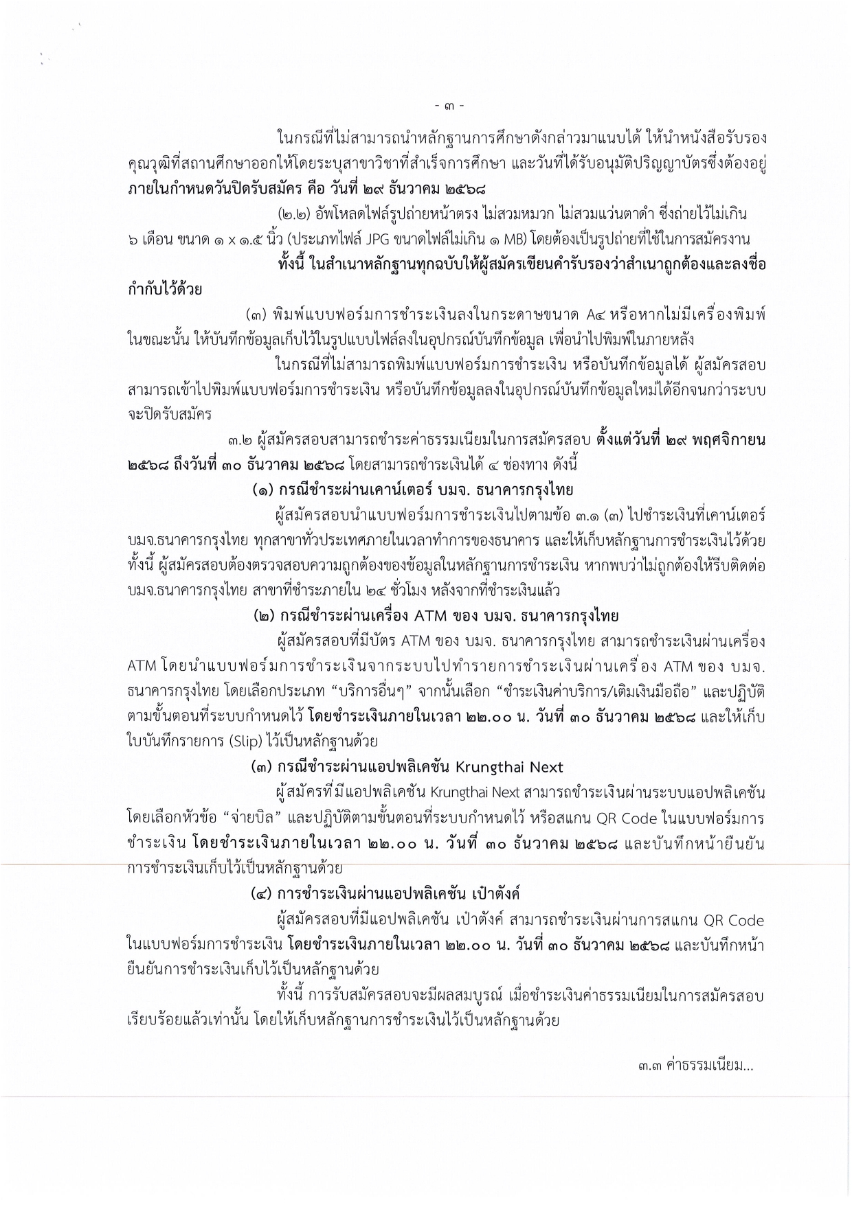 วันรับสมัคร: 29 พฤศจิกายน 2568 – 29 ธันวาคม 2568 (ตลอด 24 ชั่วโมง ไม่เว้นวันหยุดราชการ)
