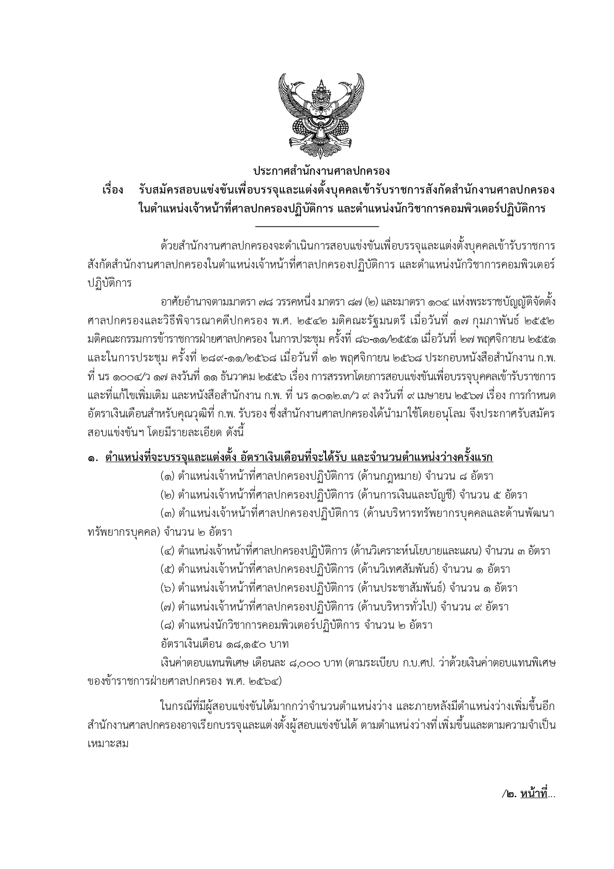 คลิกที่นี่เพื่ออ่าน ประกาศสำนักงานศาลปกครอง เรื่อง รับสมัครสอบแข่งขันเพื่อบรรจุและแต่งตั้งบุคคลเข้ารับราชการสังกัดสำนักงานศาลปกครอง ในตำแหน่งเจ้าหน้าที่ศาลปกครองปฏิบัติการ และตำแหน่งนักวิชาการคอมพิวเตอร์ปฏิบัติการ