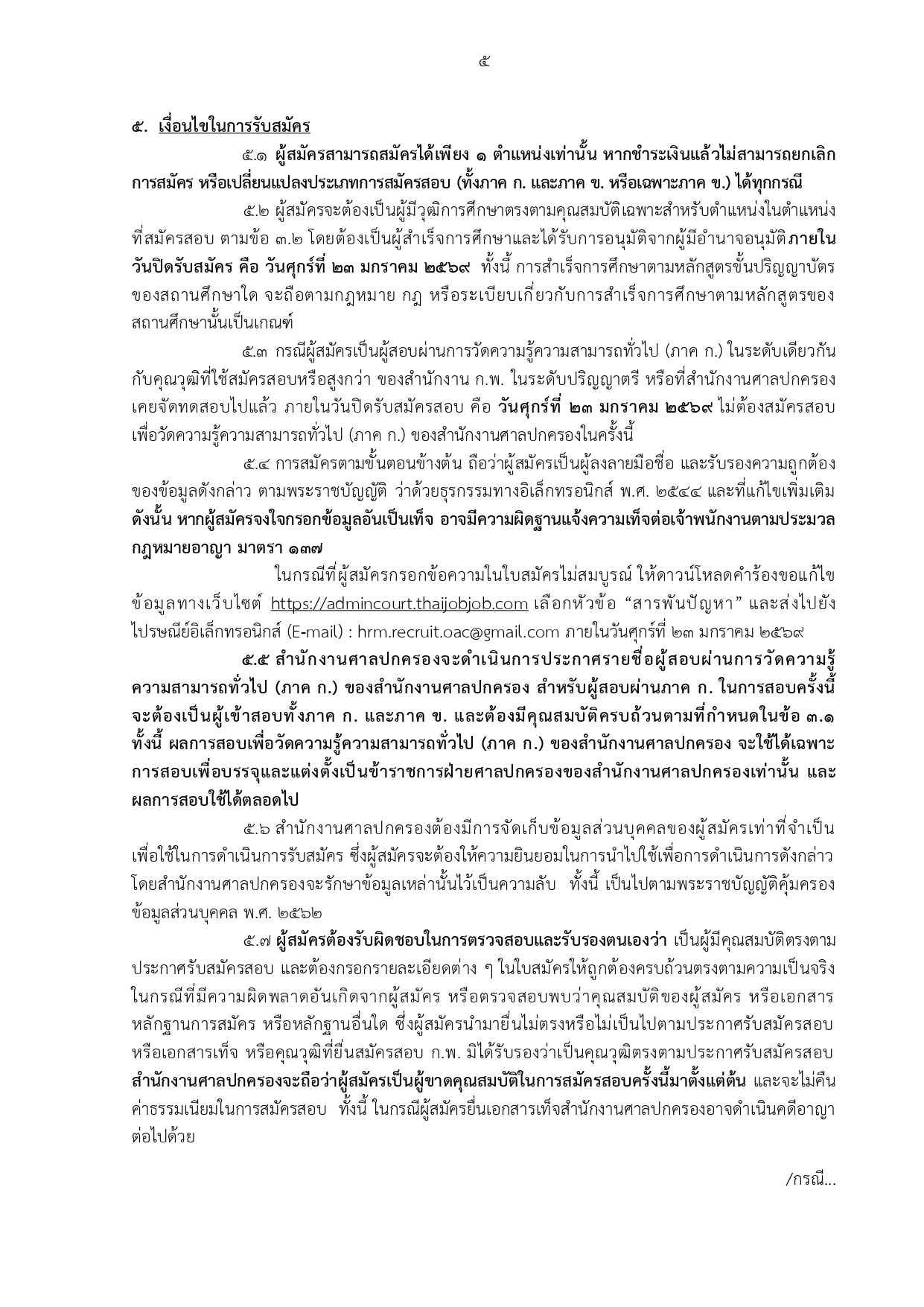 ตำแหน่งเจ้าหน้าที่ศาลปกครองปฏิบัติการ (ด้านการเงินและบัญชี) จำนวน 5 อัตรา